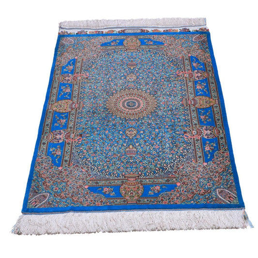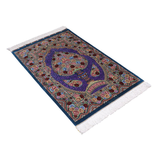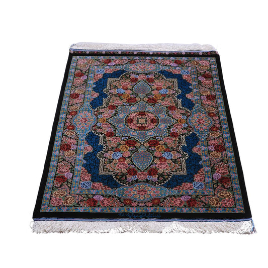 高級ペルシャ絨毯(シルク100%)クム 126×82cm(FN-70296)