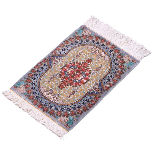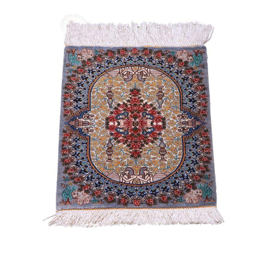 高級ペルシャ絨毯(シルク100%)クム 42×28cm(FN-70276)