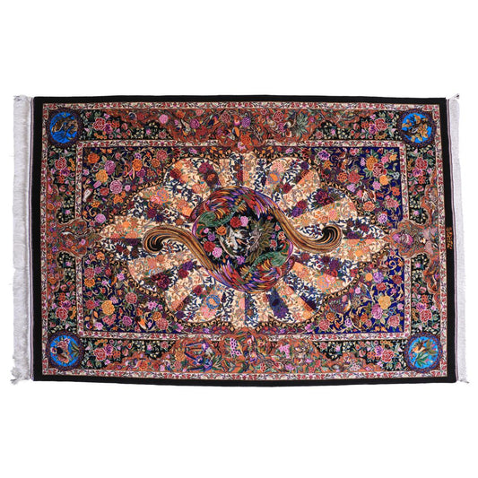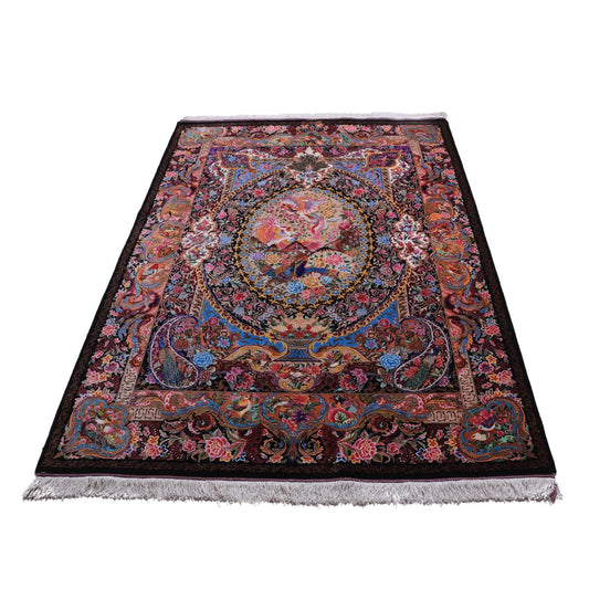 高級ペルシャ絨毯(シルク100%)クム 41×28cm(FN-70277)
