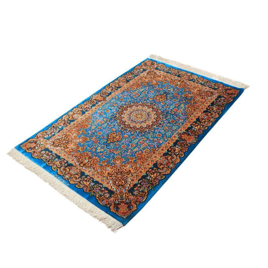 高級ペルシャ絨毯(シルク100%)メフルバフ工房 150×98cm(FN-70354)