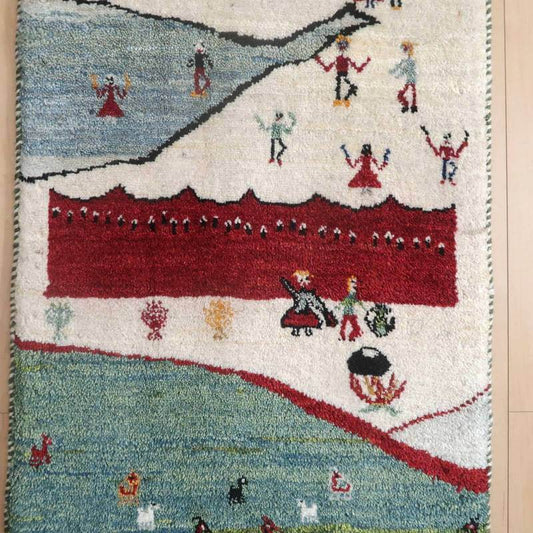 プレミアムギャッベ/ホシナマイ(ルリバフ) 92×62cm(HSS-77795)