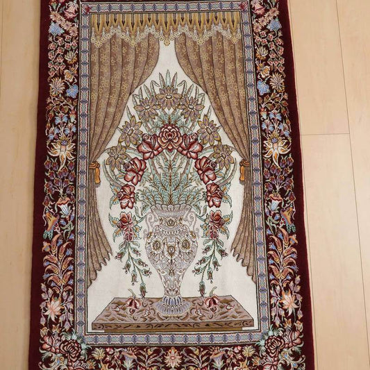 高級ペルシャ絨毯クム 132×80cm(FS-22016)