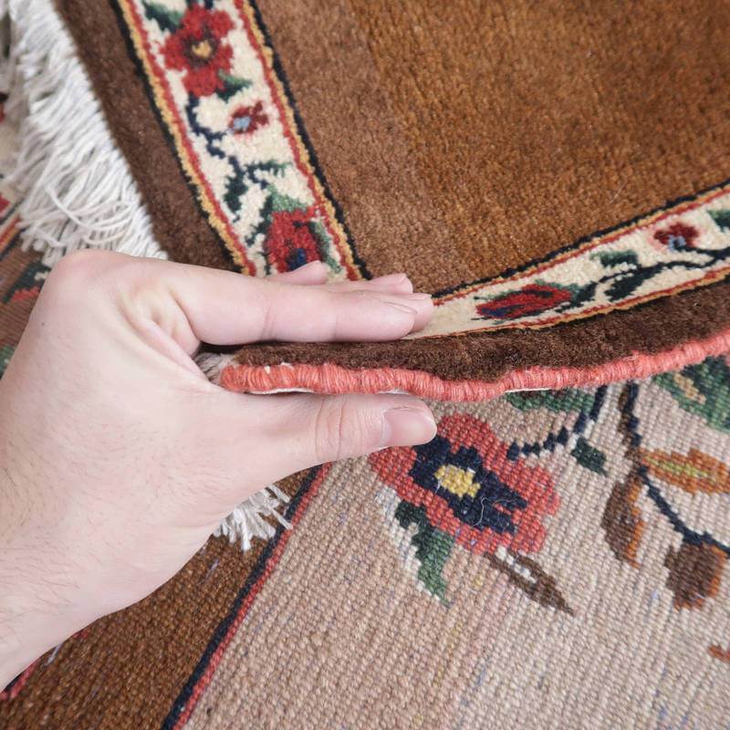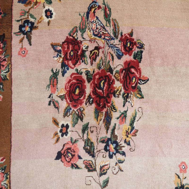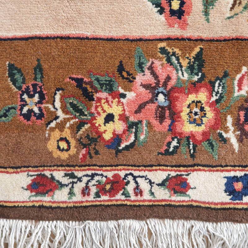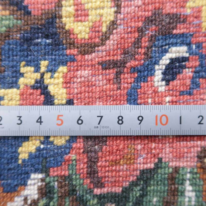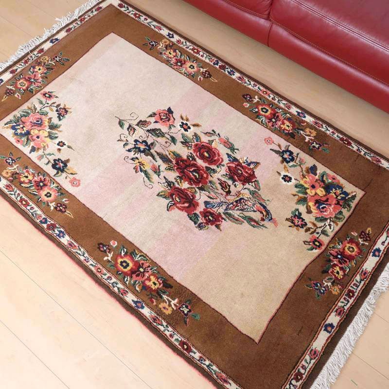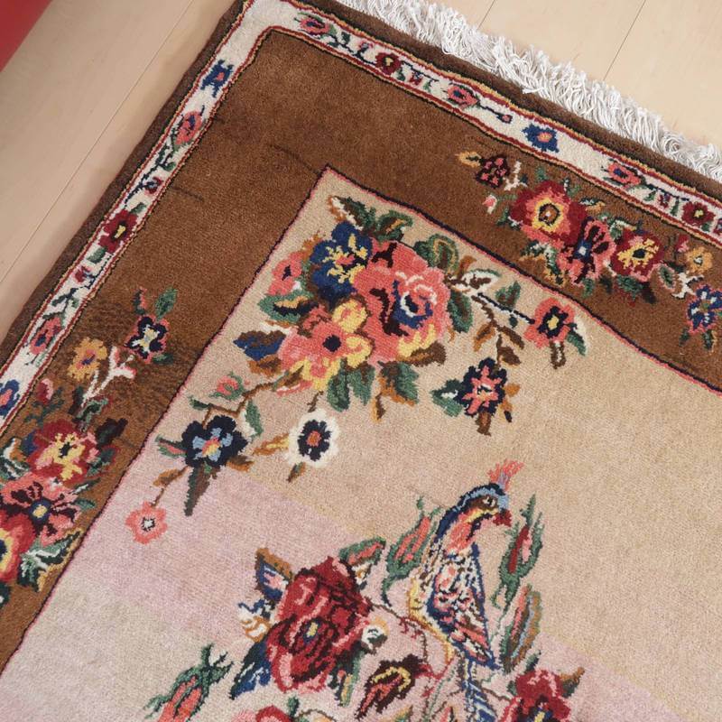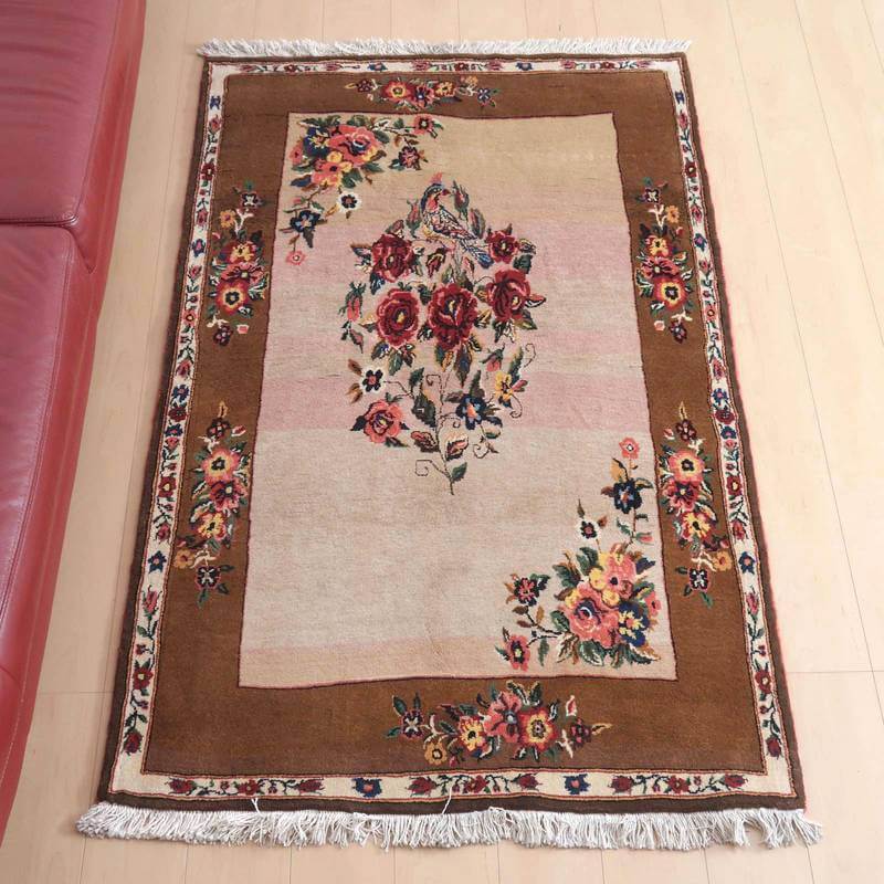 家庭の中で、母から娘に受け継がれて織られる昔ながらの家庭織りの絨毯です。かたく目の詰まった丈夫な作りで、早く仕上げる為ゆるく粗く織られる商用生産の絨毯には無い、誠実さと愛着が感じられる手仕事の味わい深さがあります。長い歴史に裏打ちされた確かなクォリティは、本物志向の方、違いの分かる方にこそ愛されています。イラン南部、シラーズ地方ならではの色彩豊かな色使いの明るいデザインです。