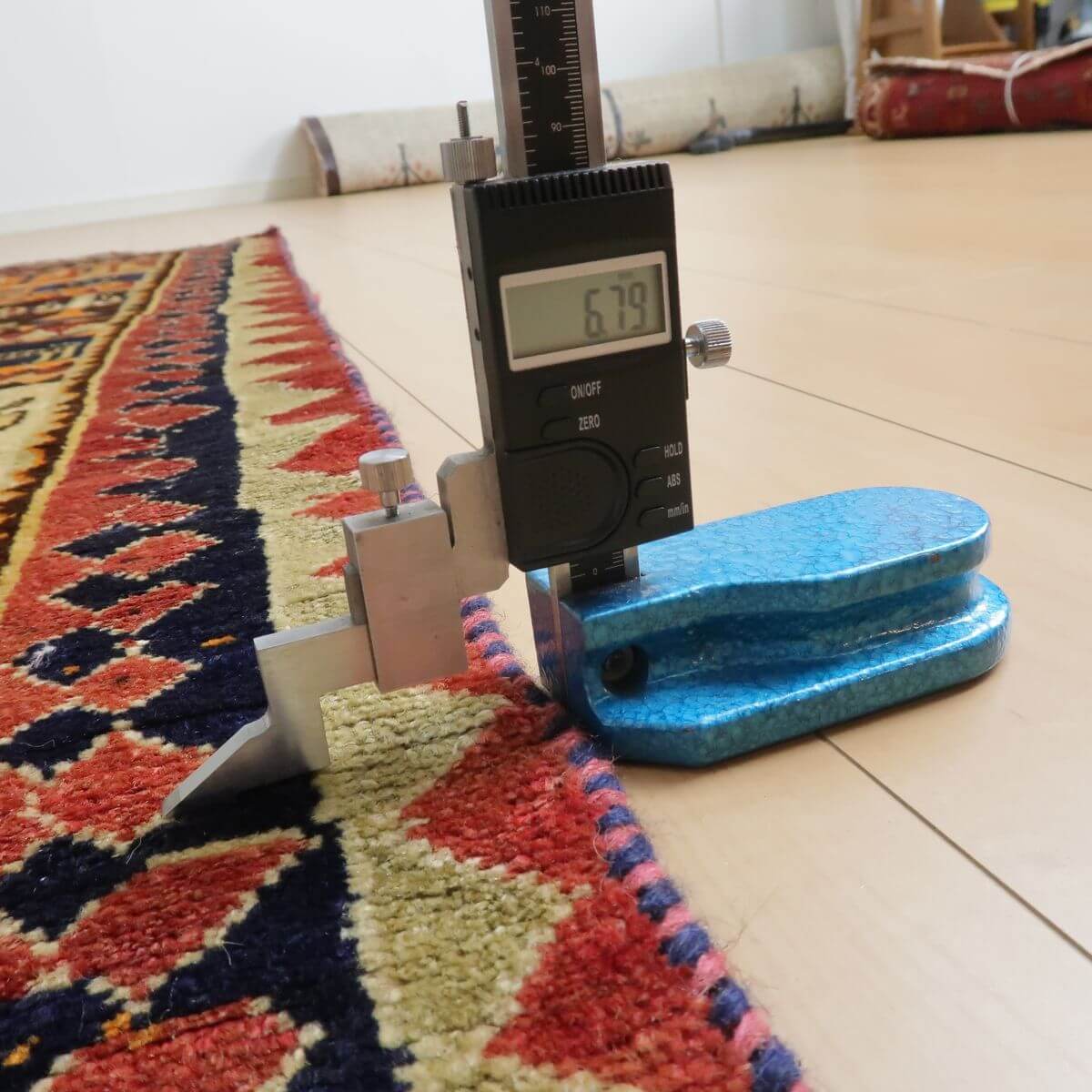 照明の違いで色合いが多少違って見えます。また、ギャッベは毛足に向きがあるので、見る方向で、明るかったり暗かったりも見えます。