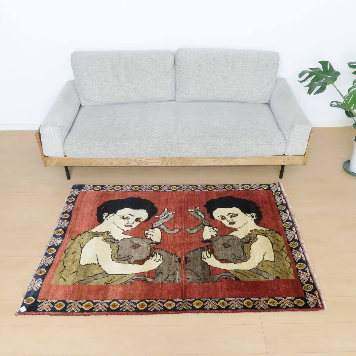 ベーシックなギャッベに比べると細めの糸を使用しており、ハリ感のある踏み心地が心地の良い、織りの詰まった作りです。コンディションの良い品を厳選しておりますが、年代なりの魅力としての擦れたような箇所、形の歪みやにじみ等がみられる部分は敢えて持たせるセレクトとしております、新品にはない味わいとしてご鑑賞ください。メンテナンスクリーニングは現地と自社で二重に施しており、清潔感をもって使えます。