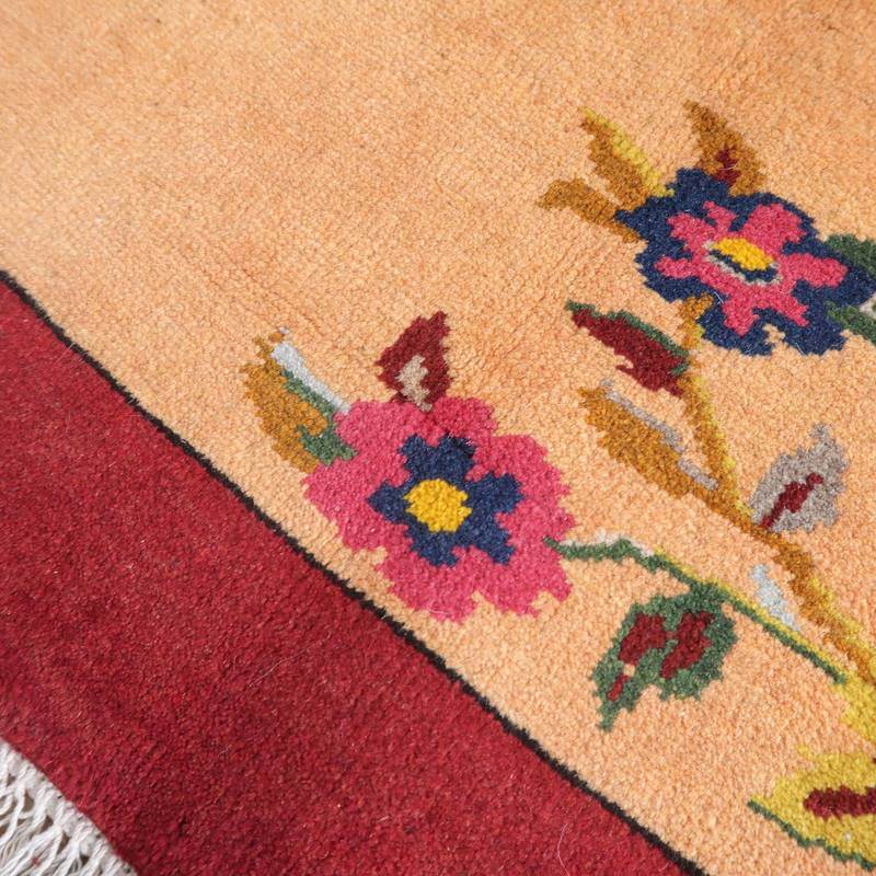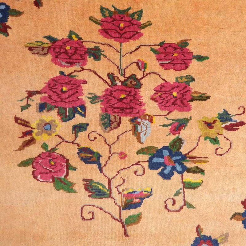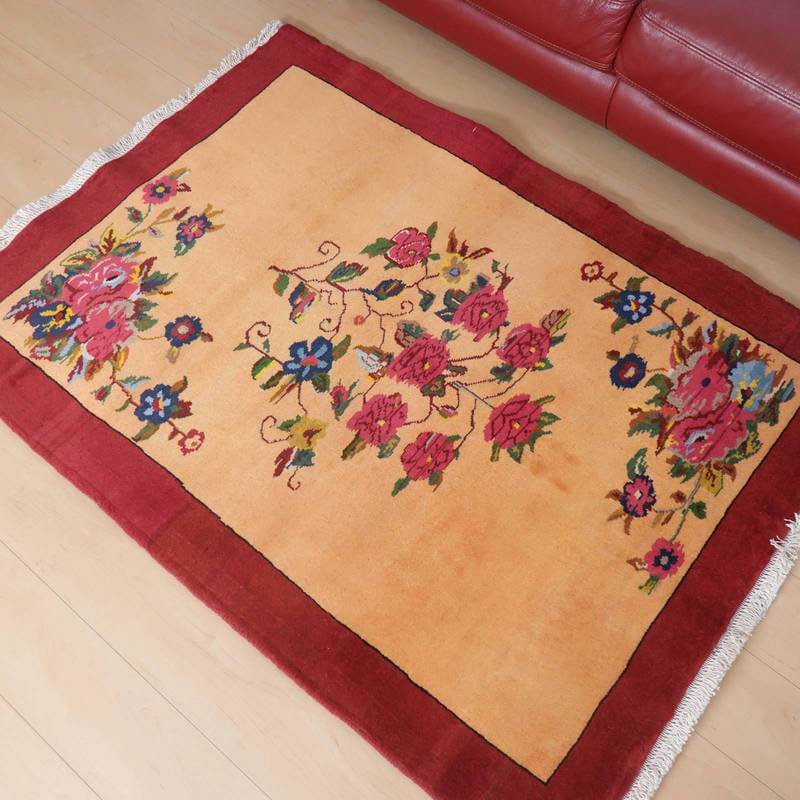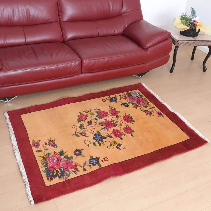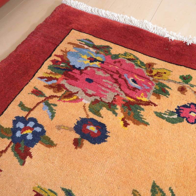 家庭の中で、母から娘に受け継がれて織られる昔ながらの家庭織りの絨毯です。かたく目の詰まった丈夫な作りで、早く仕上げる為ゆるく粗く織られる商用生産の絨毯には無い、誠実さと愛着が感じられる手仕事の味わい深さがあります。長い歴史に裏打ちされた確かなクォリティは、本物志向の方、違いの分かる方にこそ愛されています。イラン南部、シラーズ地方ならではの色彩豊かな色使いの明るいデザインです。