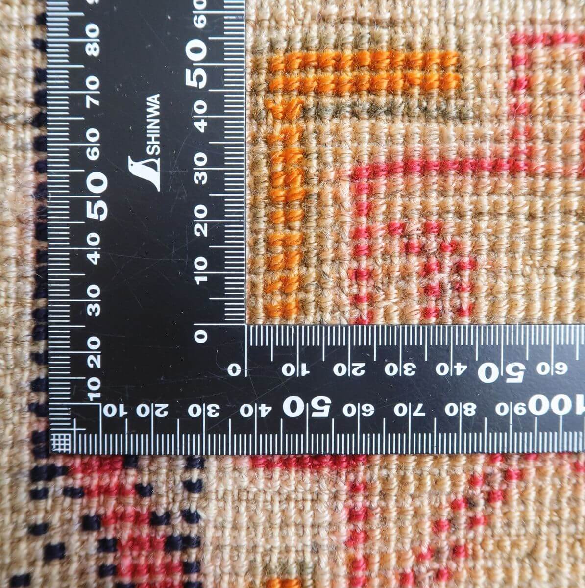 アマレランクの細糸で密度の高い織りになりますので、模様の表情も細やかに表現されています。ハリ感のある踏み心地がさらっと心地の良い感触。コンディションの良い品を厳選しておりますが、年代なりの魅力としての擦れたような箇所、形の歪みやにじみ等がみられる部分は敢えて持たせるセレクトとしております、新品にはない味わいとしてご鑑賞ください。メンテナンスクリーニングは現地と自社で二重に施しており、清潔感をもって使えます。