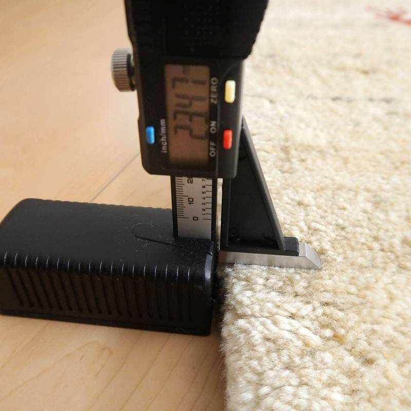 照明の違いで色合いが多少違って見えます。また、ギャッベは毛足に向きがあるので、見る方向で、明るかったり暗かったりも見えます。