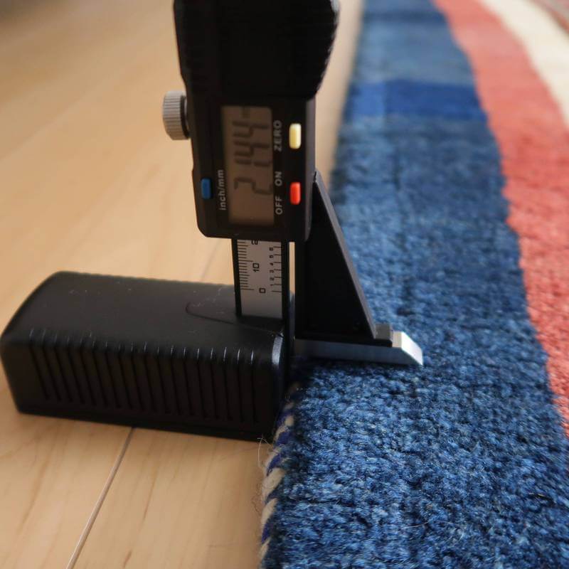 照明の違いで色合いが多少違って見えます。また、ギャッベは毛足に向きがあるので、見る方向で、明るかったり暗かったりも見えます。