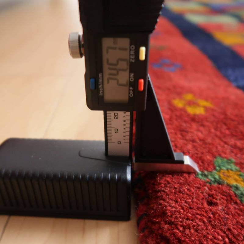 照明の違いで色合いが多少違って見えます。また、ギャッベは毛足に向きがあるので、見る方向で、明るかったり暗かったりも見えます。
