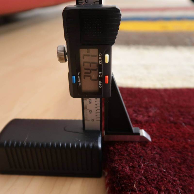 照明の違いで色合いが多少違って見えます。また、ギャッベは毛足に向きがあるので、見る方向で、明るかったり暗かったりも見えます。