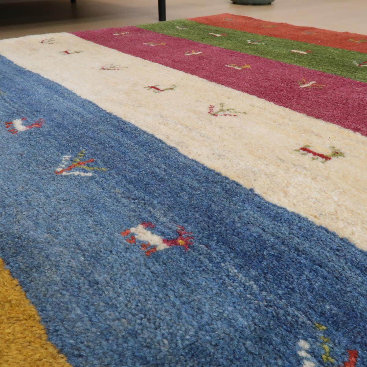 ラティーフのコンセプトは「優しさ」。「Latif」 (ラティーフ) は、ペルシア語で「柔らか」、「優しく美しい」、「繊細」という意味です。ギャッベはもともと遊牧民の女性が、心に浮かんだイメージだけで製図など無しに作られるものでした。絵を描くように、好きな色とデザインを、質の高いウールを使って、和やかな心で丁寧に織った優しさにあふれたギャッベです。
