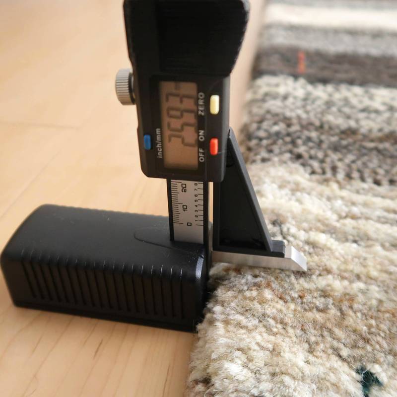 照明の違いで色合いが多少違って見えます。また、ギャッベは毛足に向きがあるので、見る方向で、明るかったり暗かったりも見えます。