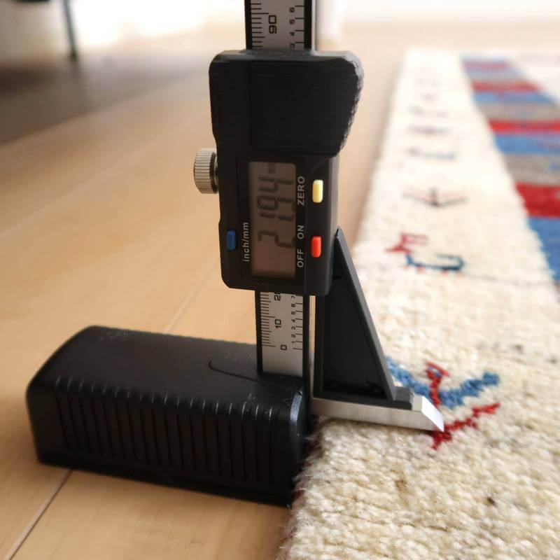 照明の違いで色合いが多少違って見えます。また、ギャッベは毛足に向きがあるので、見る方向で、明るかったり暗かったりも見えます。