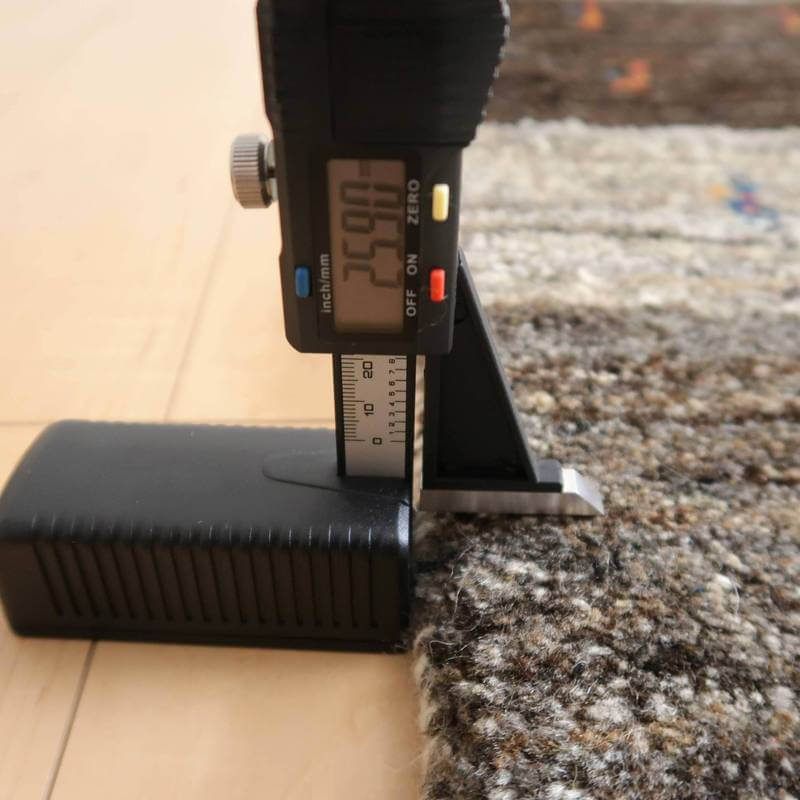 照明の違いで色合いが多少違って見えます。また、ギャッベは毛足に向きがあるので、見る方向で、明るかったり暗かったりも見えます。