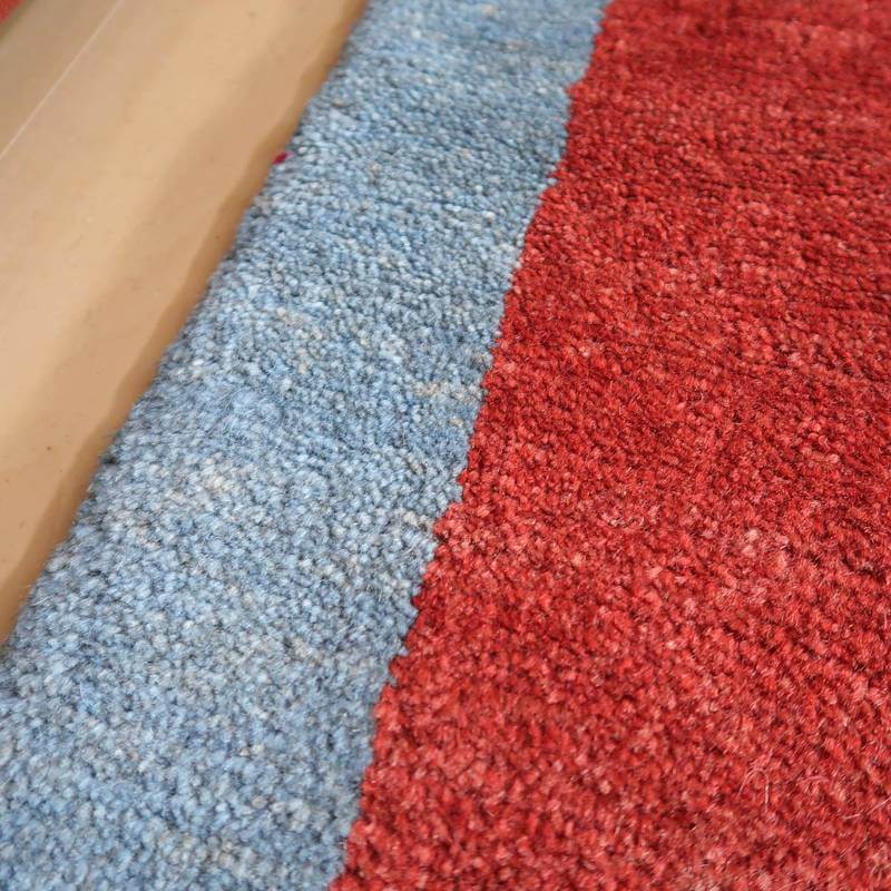 照明の違いで色合いが多少違って見えます。また、ギャッベは毛足に向きがあるので、見る方向で、明るかったり暗かったりも見えます。