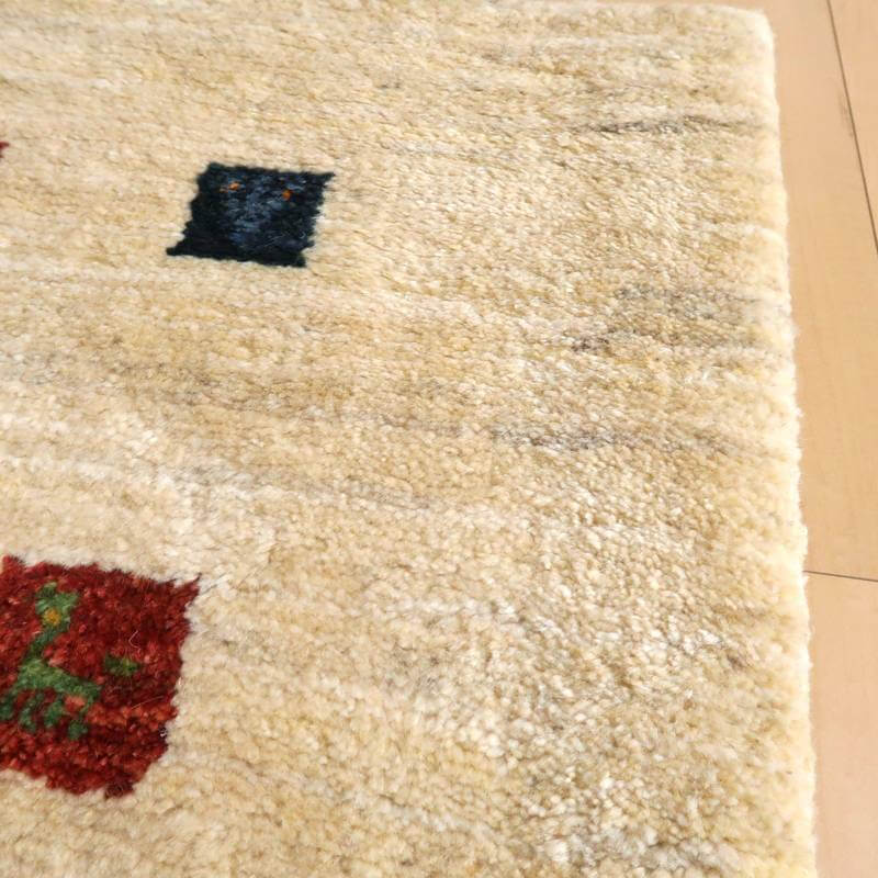 しっかりと厚みがあるベーシックな織りランク。上質なウールを使用した柔らかなギャッベだけを厳選しています。毛足が長く、ふかふかしたギャッベらしい手触り。動物や植物などの素朴なデザインが多い伝統的なカシュガイの家庭織りなので手作りの温もりが伝わってきます。