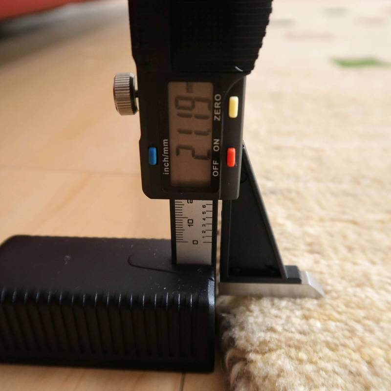照明の違いで色合いが多少違って見えます。また、ギャッベは毛足に向きがあるので、見る方向で、明るかったり暗かったりも見えます。