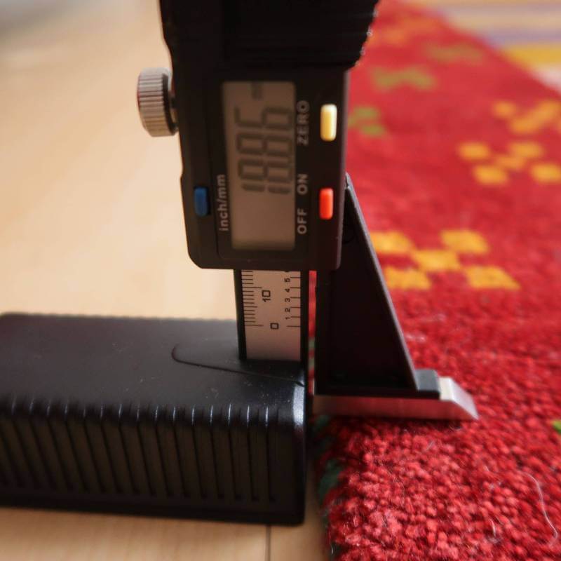 照明の違いで色合いが多少違って見えます。また、ギャッベは毛足に向きがあるので、見る方向で、明るかったり暗かったりも見えます。