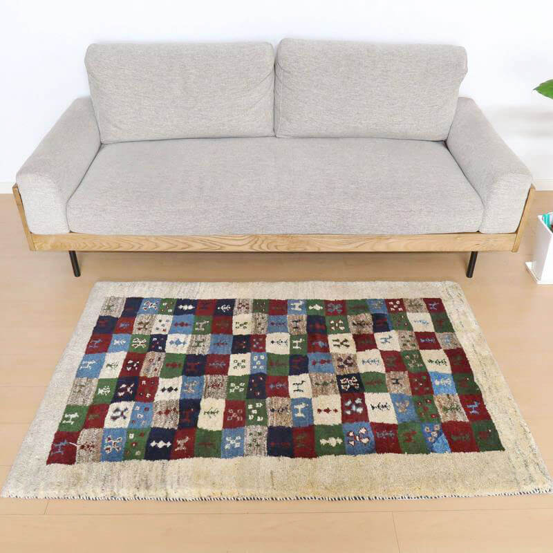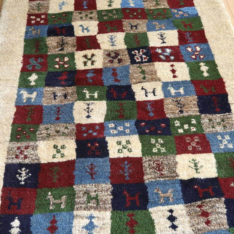 しっかりと厚みがあるベーシックな織りランク。上質なウールを使用した柔らかなギャッベだけを厳選しています。毛足が長く、ふかふかしたギャッベらしい手触り。動物や植物などの素朴なデザインが多い伝統的なカシュガイの家庭織りなので手作りの温もりが伝わってきます。