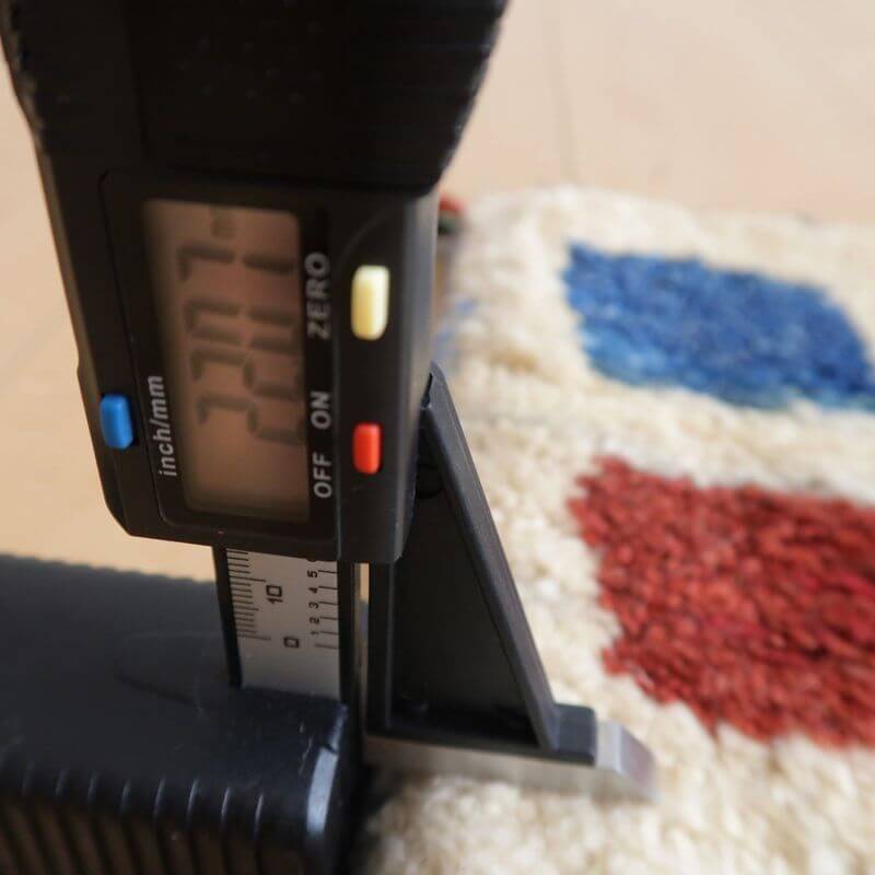 開封すぐの撮影でシワが見える写真があります。照明の違いで色合いが多少違って見えます。また、ギャッベは毛足に向きがあるので、見る方向で、明るかったり暗かったりも見えます。