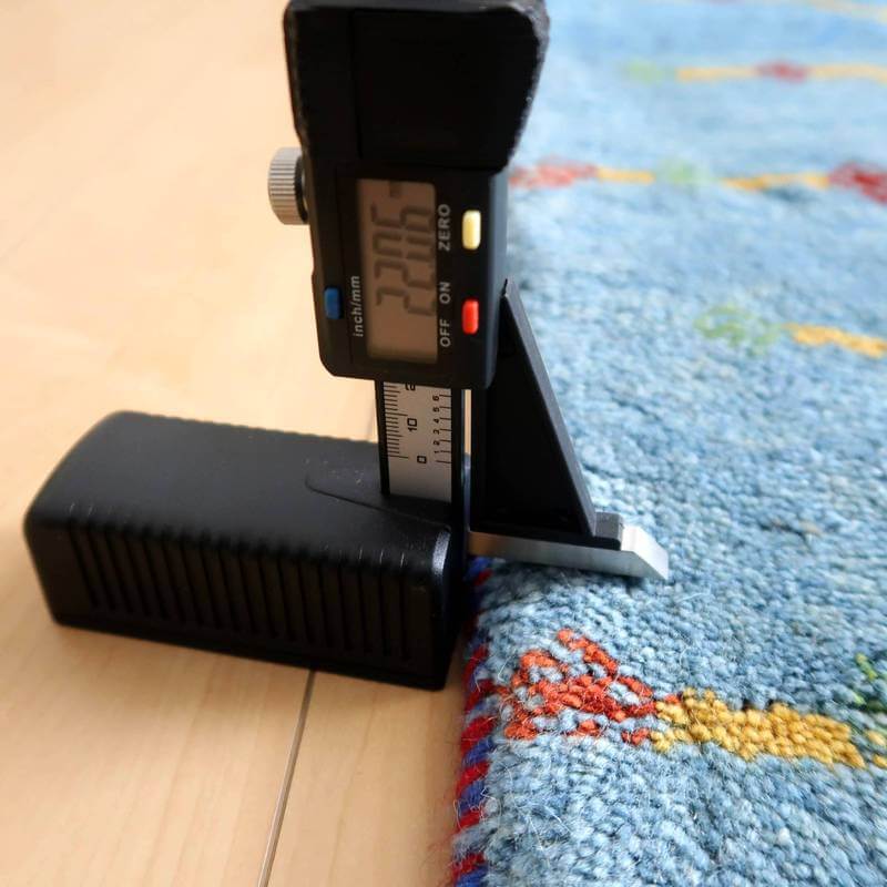 開封すぐの撮影でシワが見える写真があります。照明の違いで色合いが多少違って見えます。また、ギャッベは毛足に向きがあるので、見る方向で、明るかったり暗かったりも見えます。