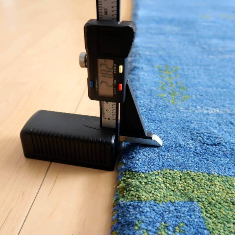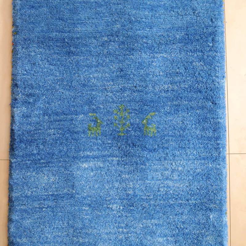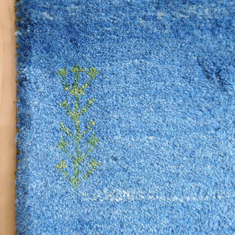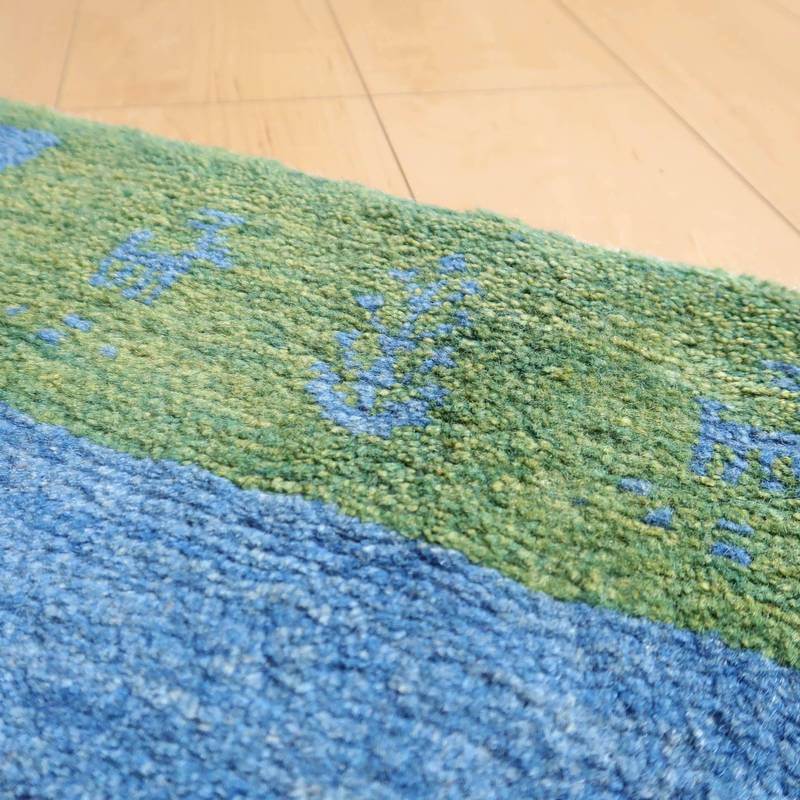 開封すぐの撮影でシワが見える写真があります。照明の違いで色合いが多少違って見えます。また、ギャッベは毛足に向きがあるので、見る方向で、明るかったり暗かったりも見えます。
