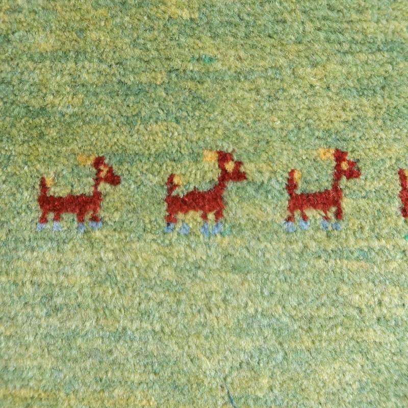 イランでは、通常のギャッベを「ギャッベ」、それより細かい織りのギャッベを「リーズバフ」と呼びます。リーズバフは織りの細かなギャッベの通称で、アマレ~カシュクリ程度の織り密度となります。