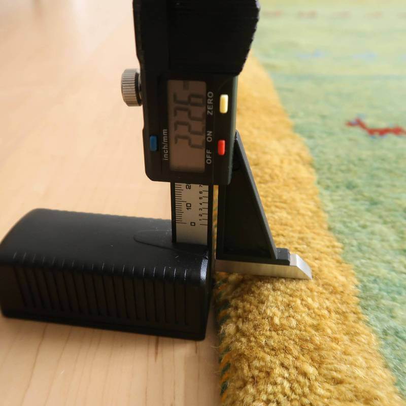照明の違いで色合いが多少違って見えます。また、ギャッベは毛足に向きがあるので、見る方向で、明るかったり暗かったりも見えます。