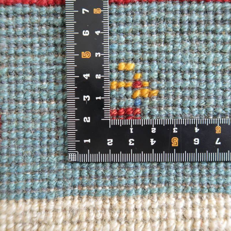 イランでは、通常のギャッベを「ギャッベ」、それより細かい織りのギャッベを「リーズバフ」と呼びます。リーズバフは織りの細かなギャッベの通称で、アマレ~カシュクリ程度の織り密度となります。