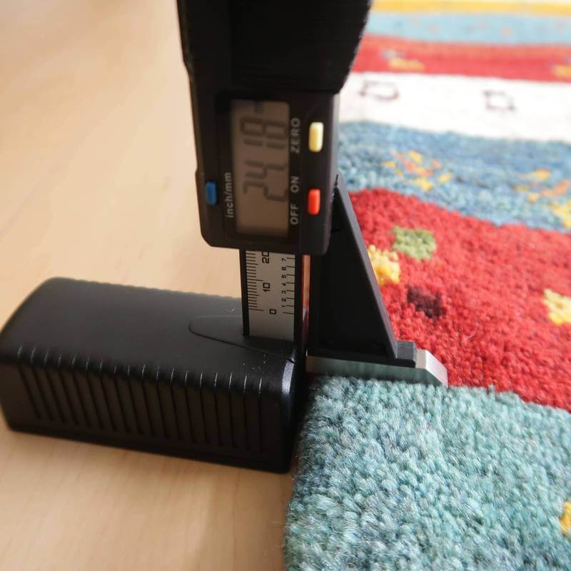 照明の違いで色合いが多少違って見えます。また、ギャッベは毛足に向きがあるので、見る方向で、明るかったり暗かったりも見えます。