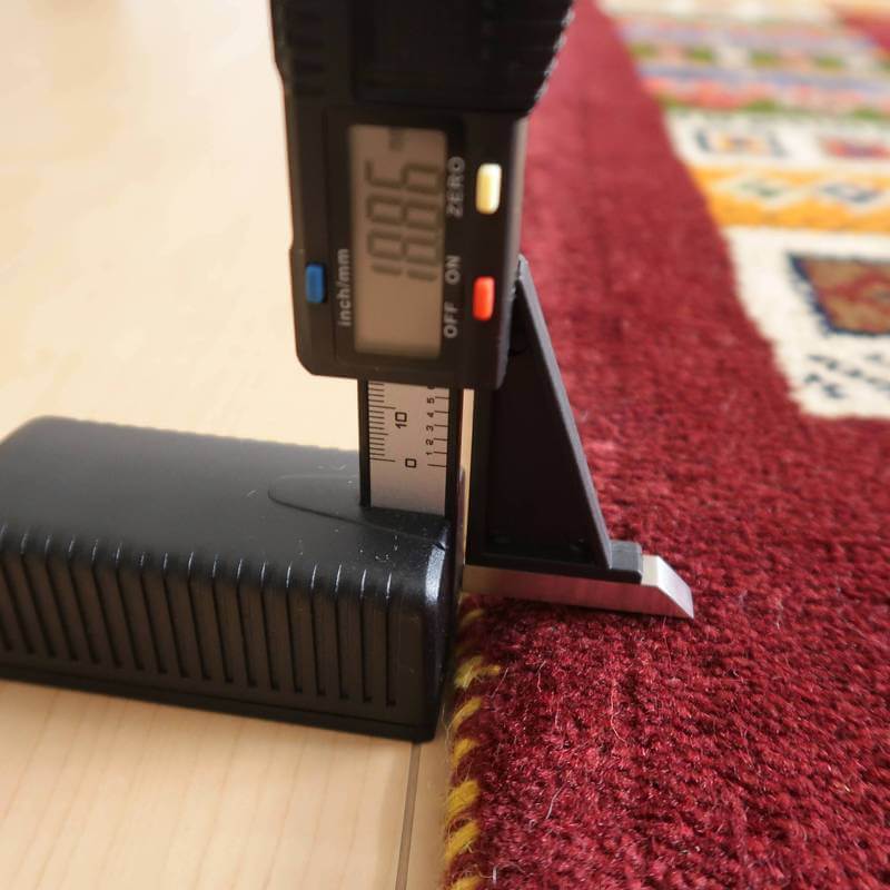 照明の違いで色合いが多少違って見えます。また、ギャッベは毛足に向きがあるので、見る方向で、明るかったり暗かったりも見えます。