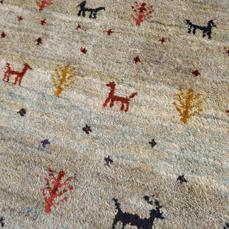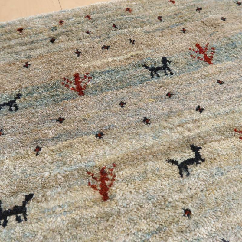 こちらは、「アマレ」という織りの細かなランクのギャッベです。織り密度が通常のギャッベより高く、ウールもより質の良いものが使われていますので上質感が感じられます。