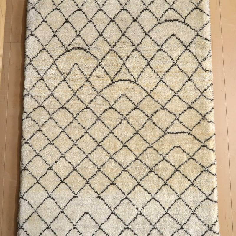 照明の違いで色合いが多少違って見えます。また、ギャッベは毛足に向きがあるので、見る方向で、明るかったり暗かったりも見えます。