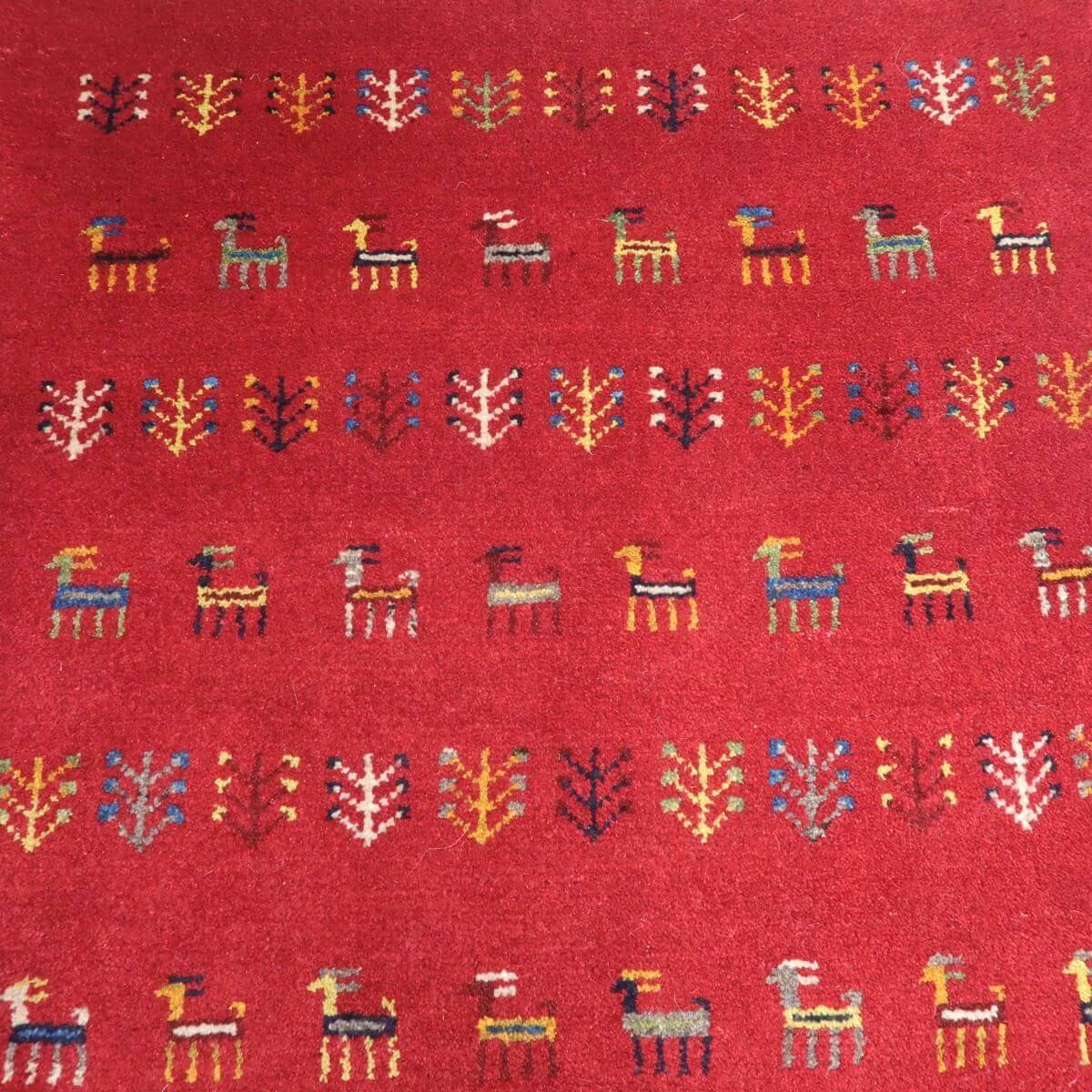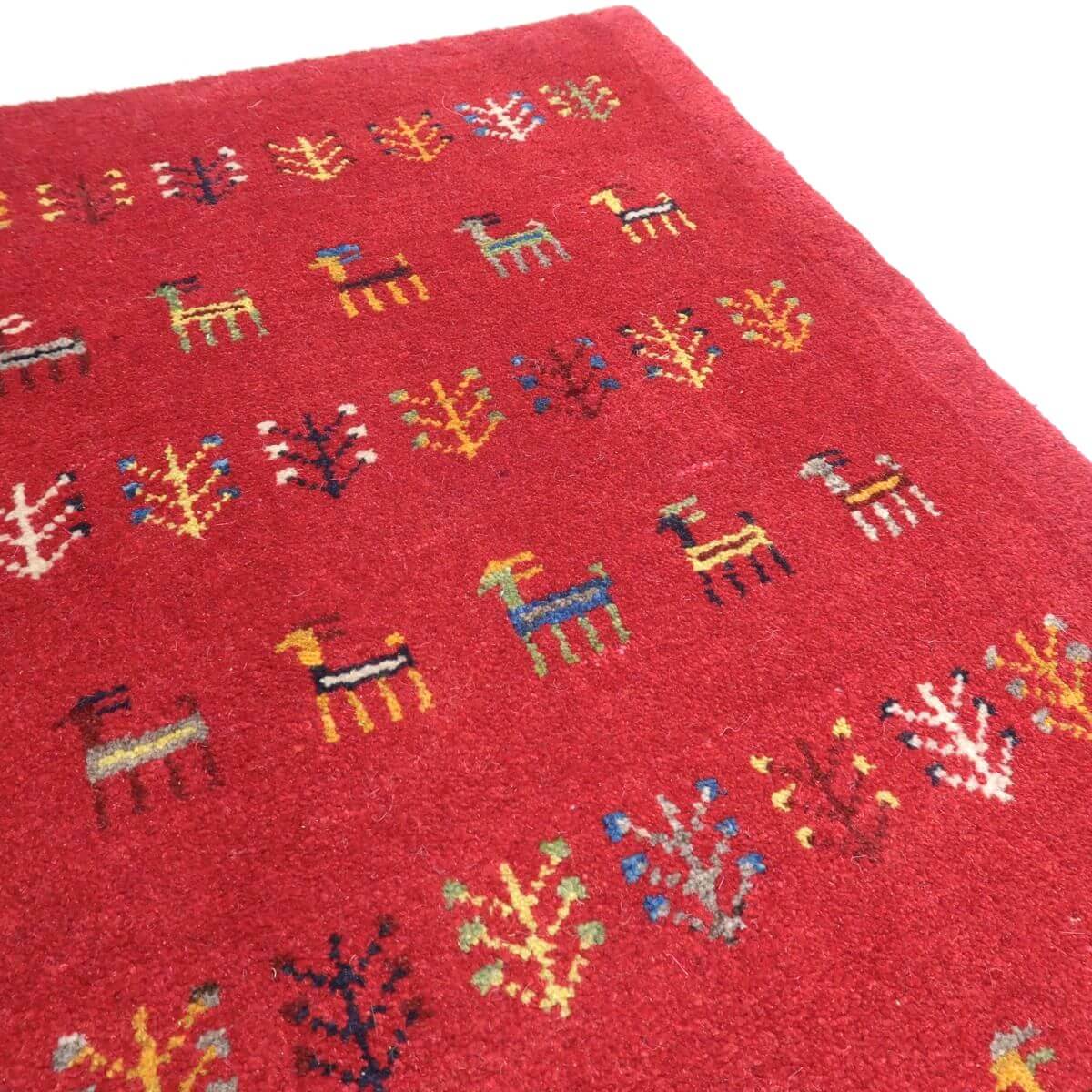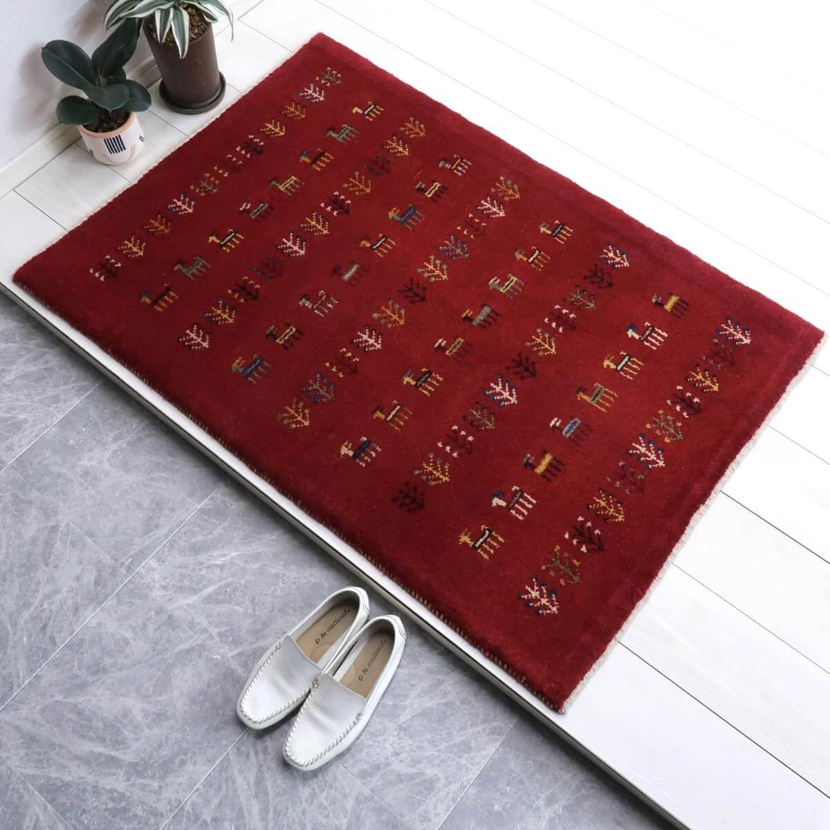 この絨毯の鮮やかな赤色は、どの空間にも暖かい印象を与えます。