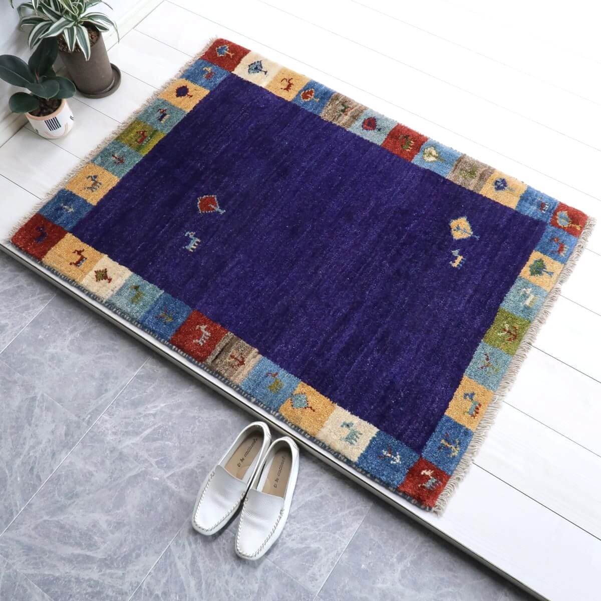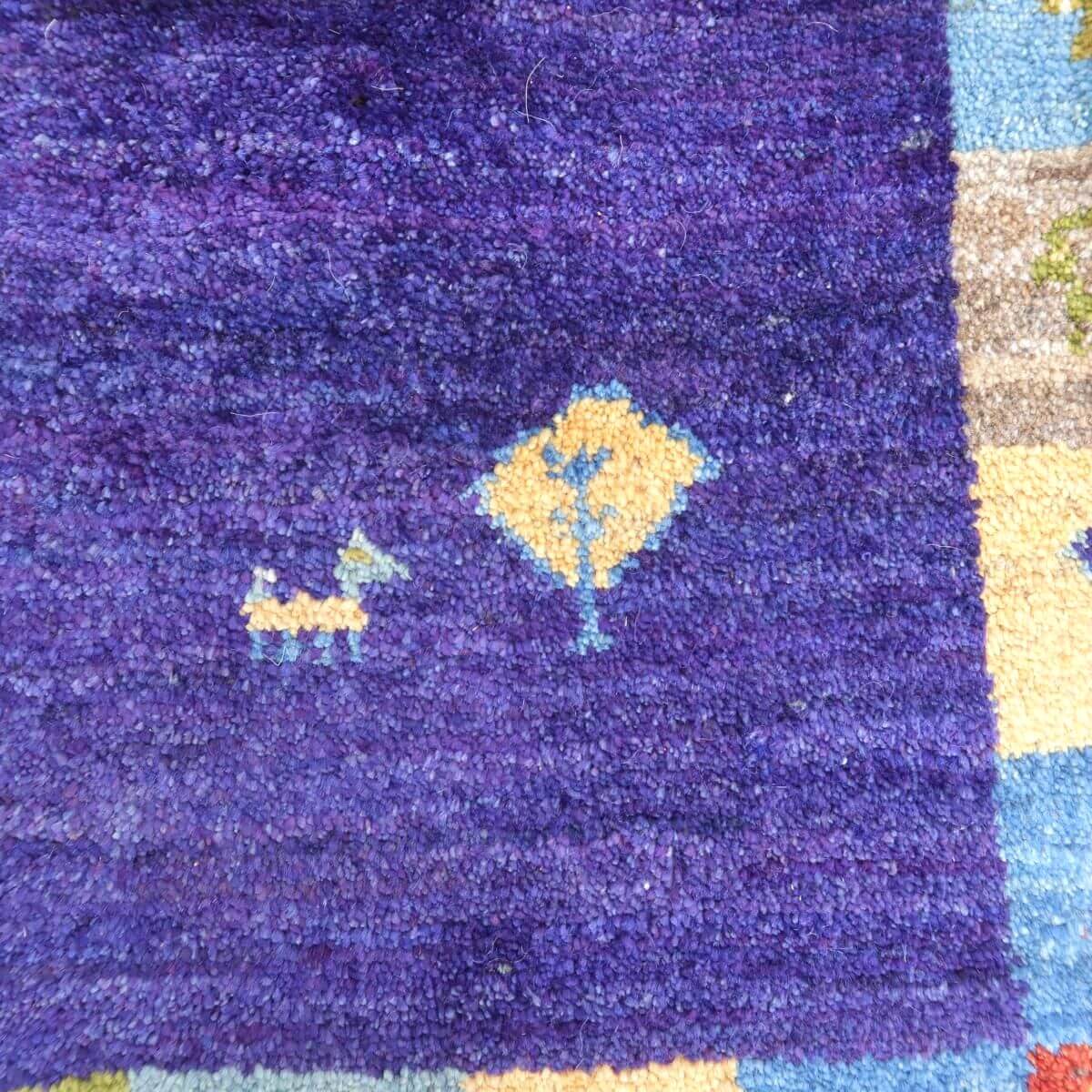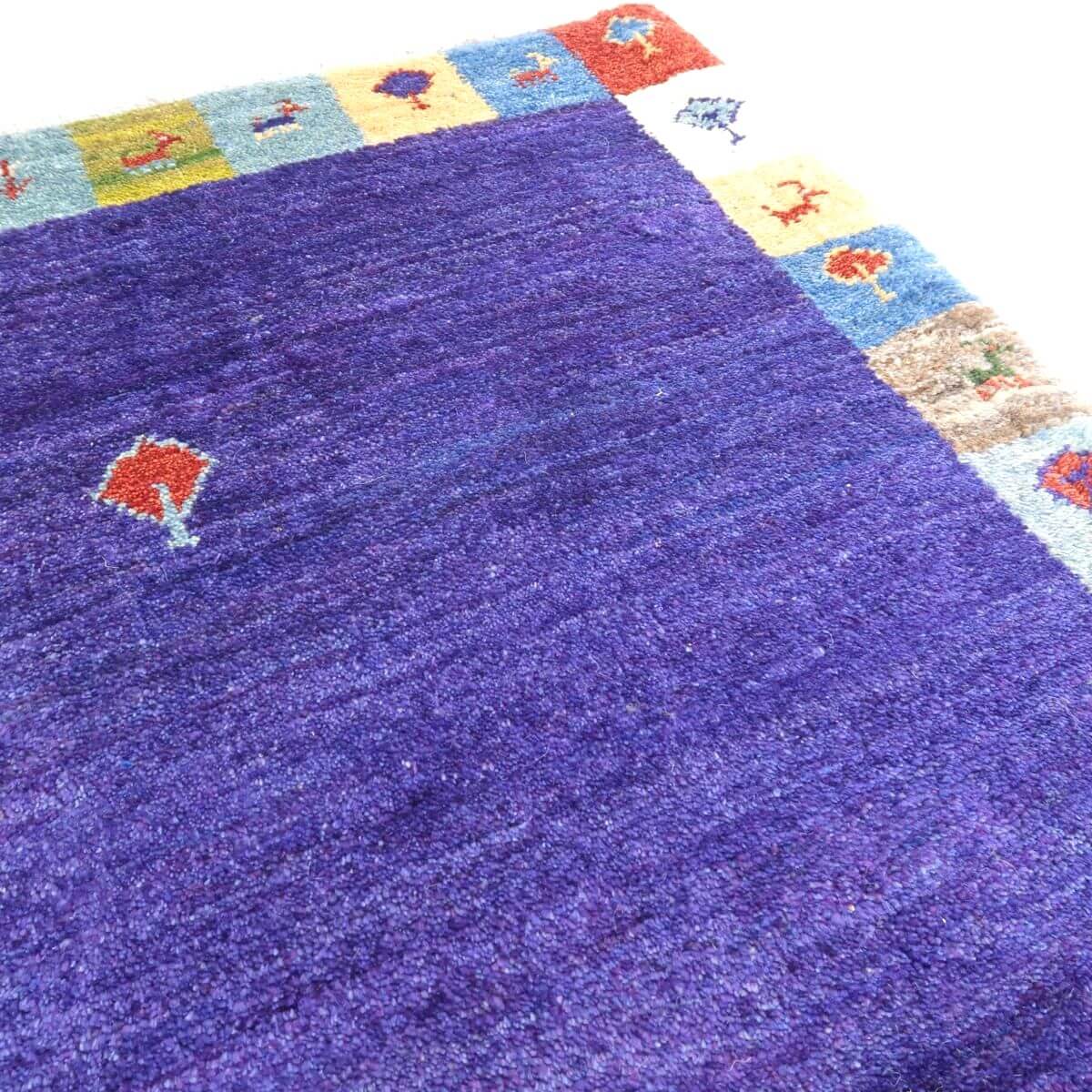 この鮮やかな紫色の絨毯は、周囲に色とりどりのモチーフがちりばめられているのが特徴です。