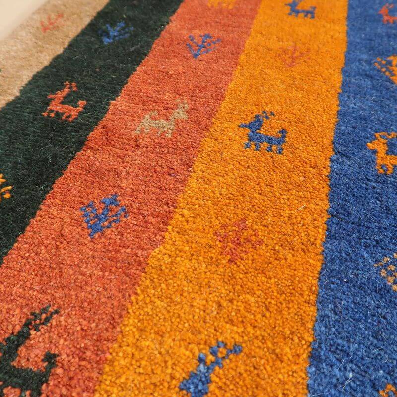 しっかりと厚みがあるベーシックな織りランク。上質なウールを使用した柔らかなギャッベだけを厳選しています。毛足が長く、ふかふかしたギャッベらしい手触り。動物や植物などの素朴なデザインが多い伝統的なカシュガイの家庭織りなので手作りの温もりが伝わってきます。