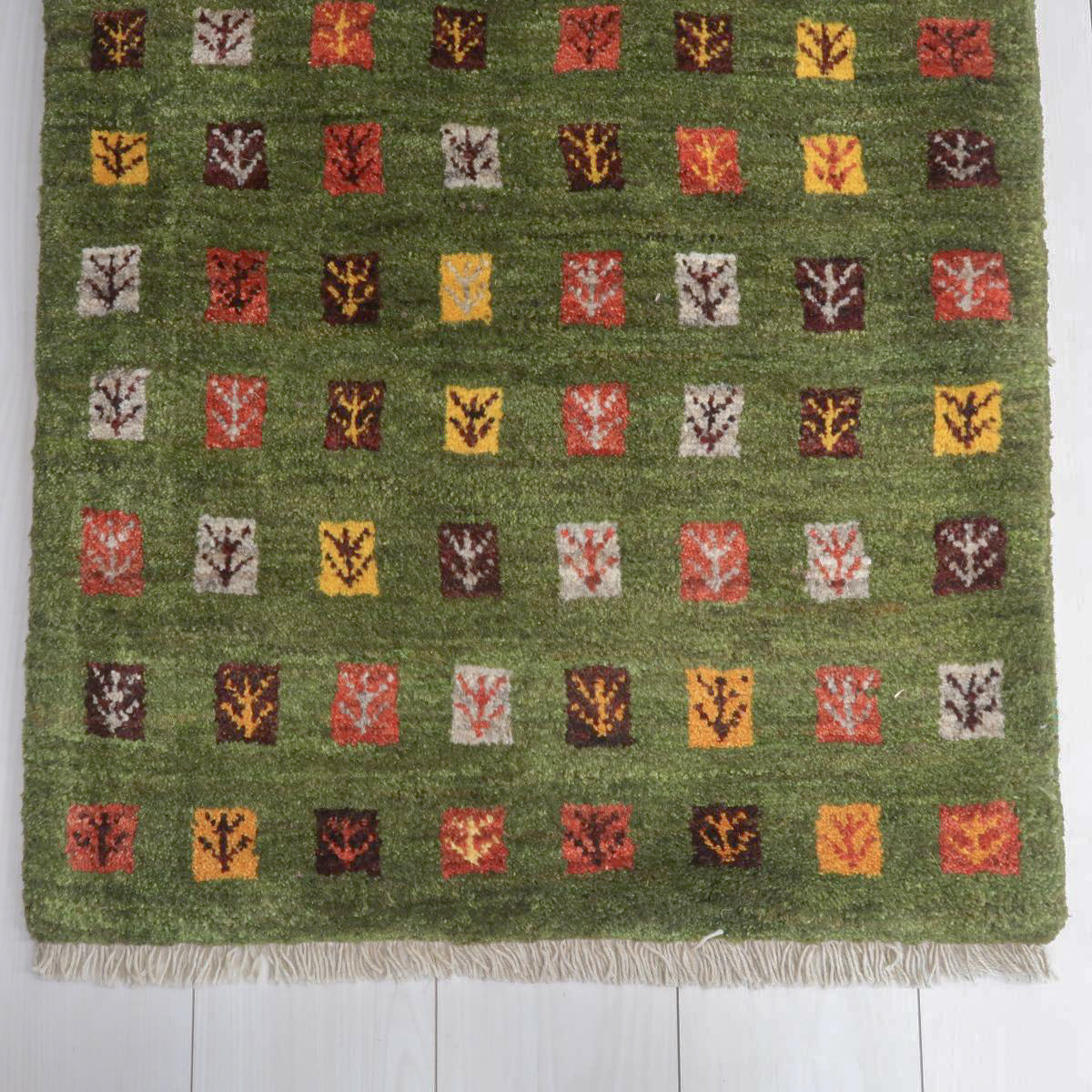 こちらは、カシュクリ族の織る「カシュクリ」と呼ばれるギャッベです。織り密度が通常のギャッベより高く、ウールもより質の良いものが使われているハイランクの上質なギャッベです。