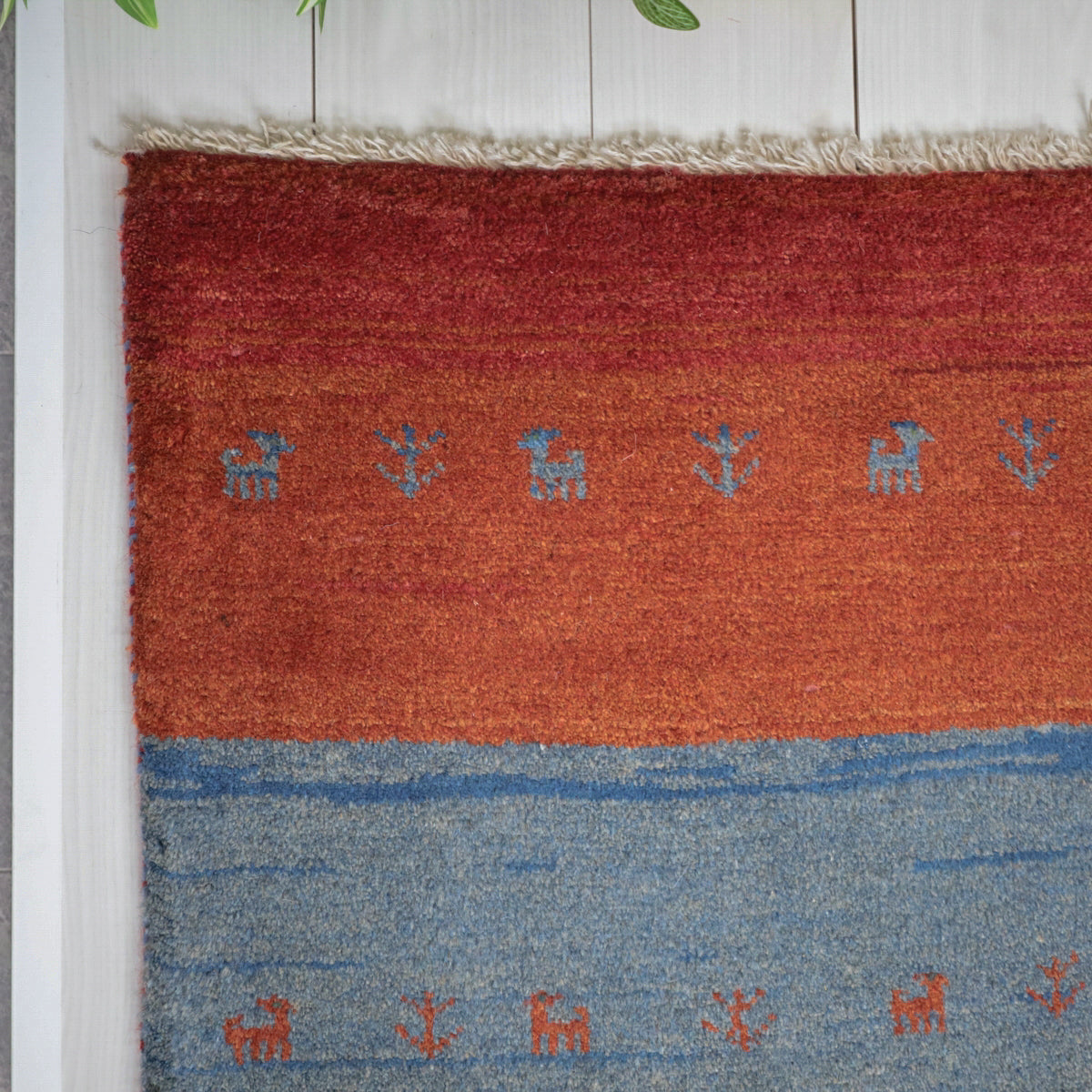 しっかりと厚みがあるベーシックな織りランク。上質なウールを使用した柔らかなギャッベだけを厳選しています。毛足が長く、ふかふかしたギャッベらしい手触り。動物や植物などの素朴なデザインが多い伝統的なカシュガイの家庭織りなので手作りの温もりが伝わってきます。