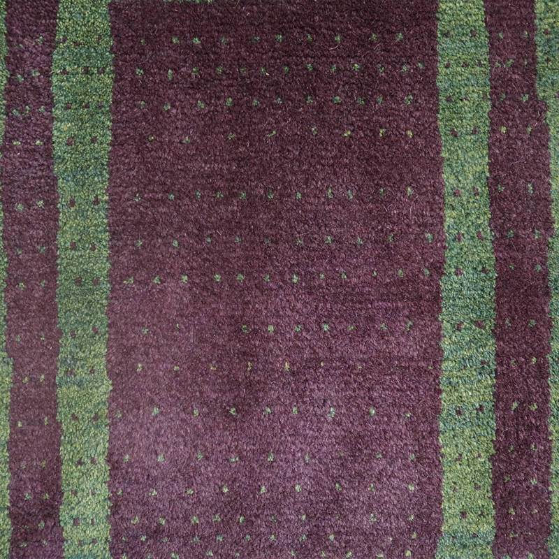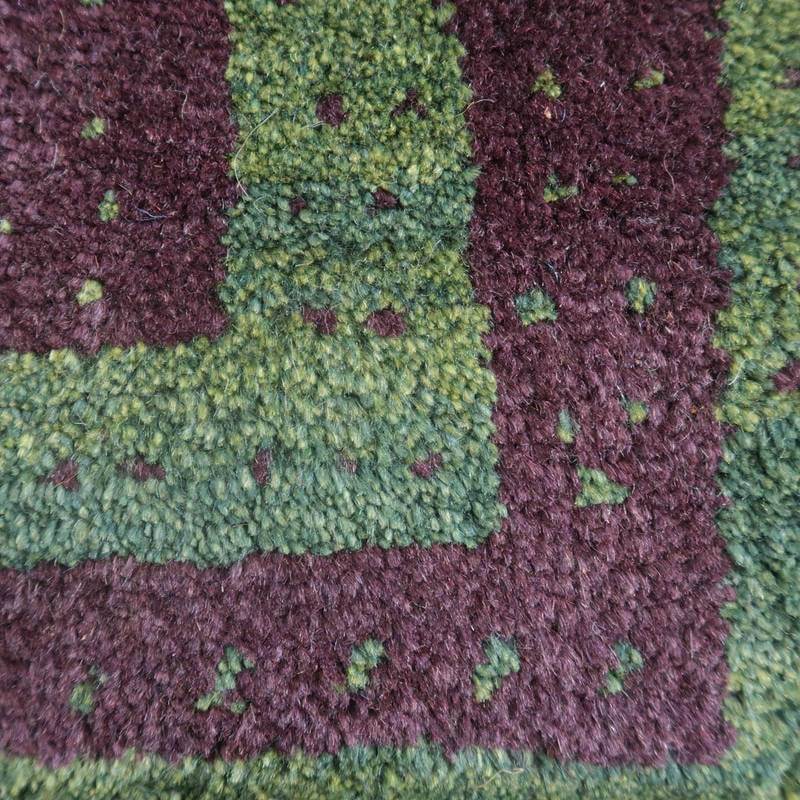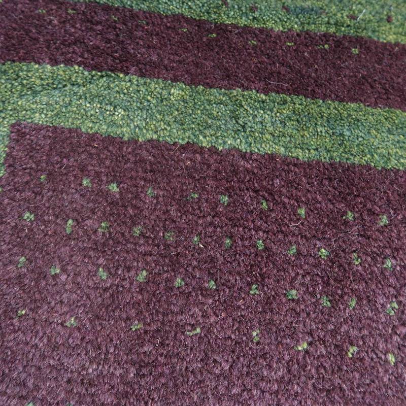 黒っぽいダークな紫色に、濃い目のグリーン。控えめなドット柄が入った、シックで大人っぽさのあるモダンな雰囲気のギャッベ。