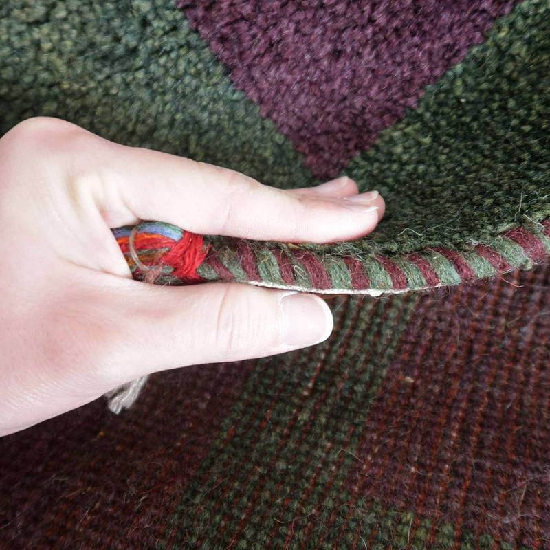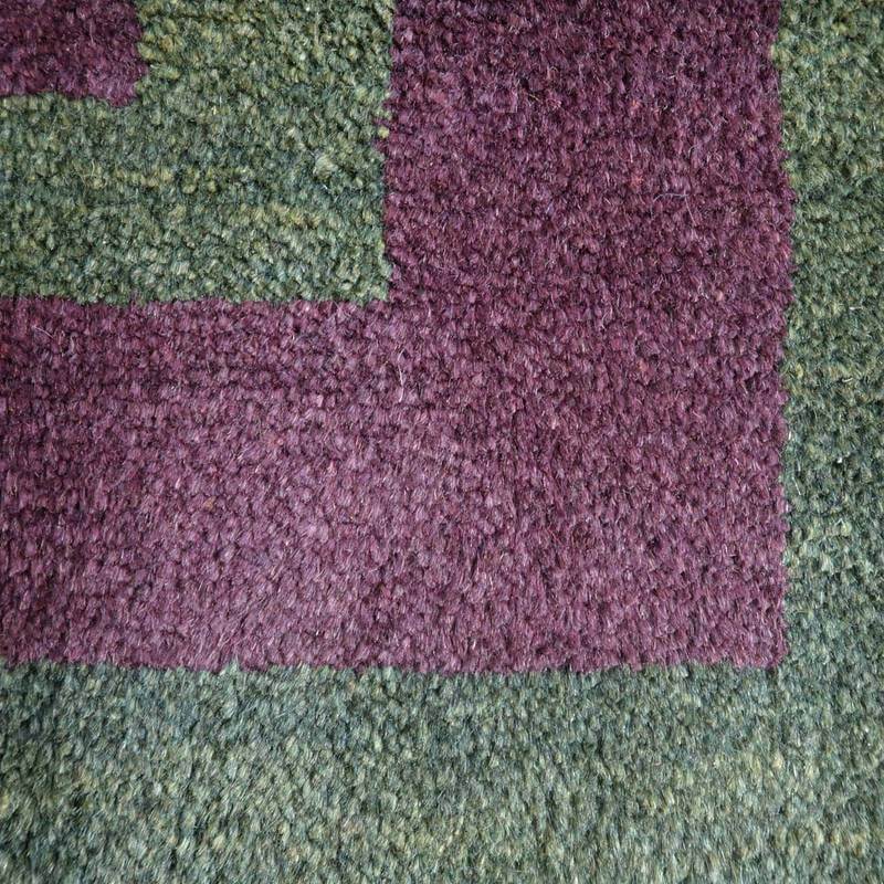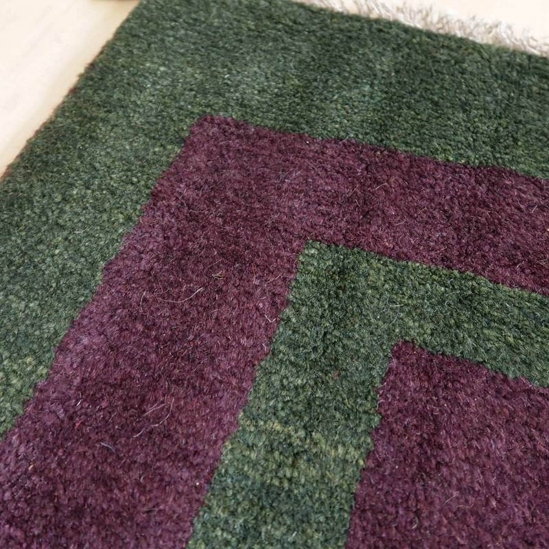 黒っぽいダークな紫色に、濃い目のグリーン。グラデーションの揺らぎも感じられる、シックで大人っぽさのあるモダンな雰囲気のギャッベ。
