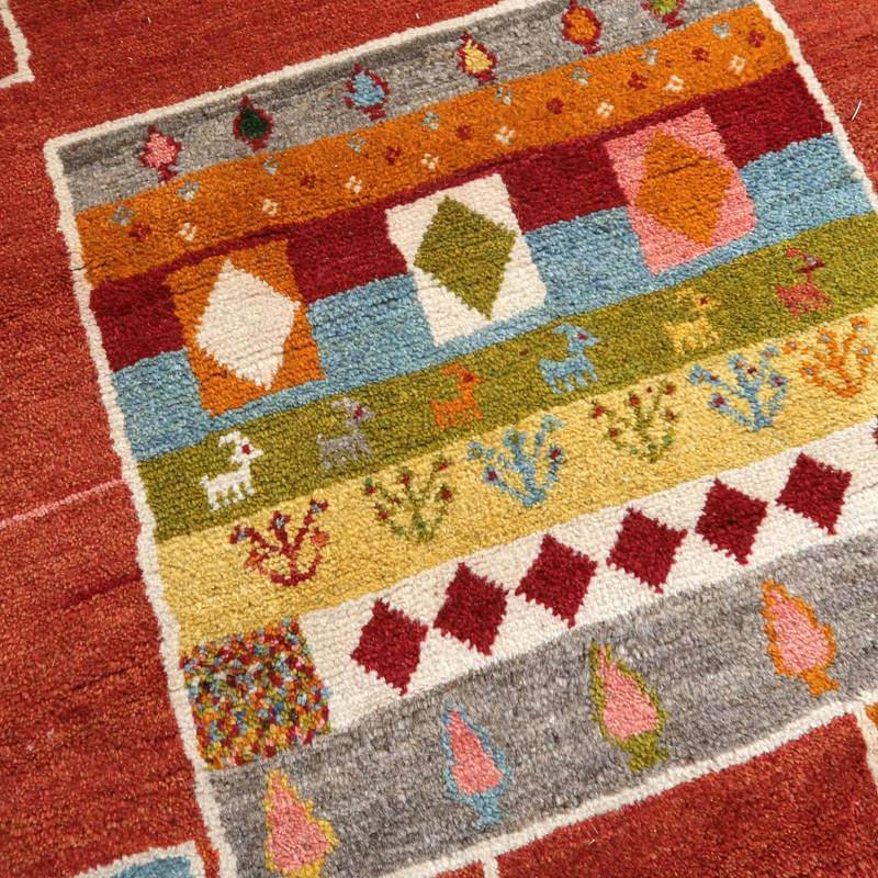 しっかりと厚みがあるベーシックな織りランク。上質なウールを使用した柔らかなギャッベだけを厳選しています。毛足が長く、ふかふかしたギャッベらしい手触り。動物や植物などの素朴なデザインが多い伝統的なカシュガイの家庭織りなので手作りの温もりが伝わってきます。