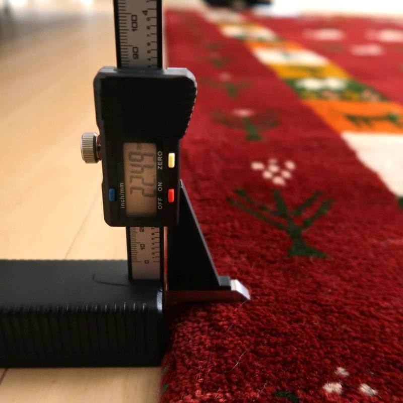 照明の違いで色合いが多少違って見えます。また、ギャッベは毛足に向きがあるので、見る方向で、明るかったり暗かったりも見えます。