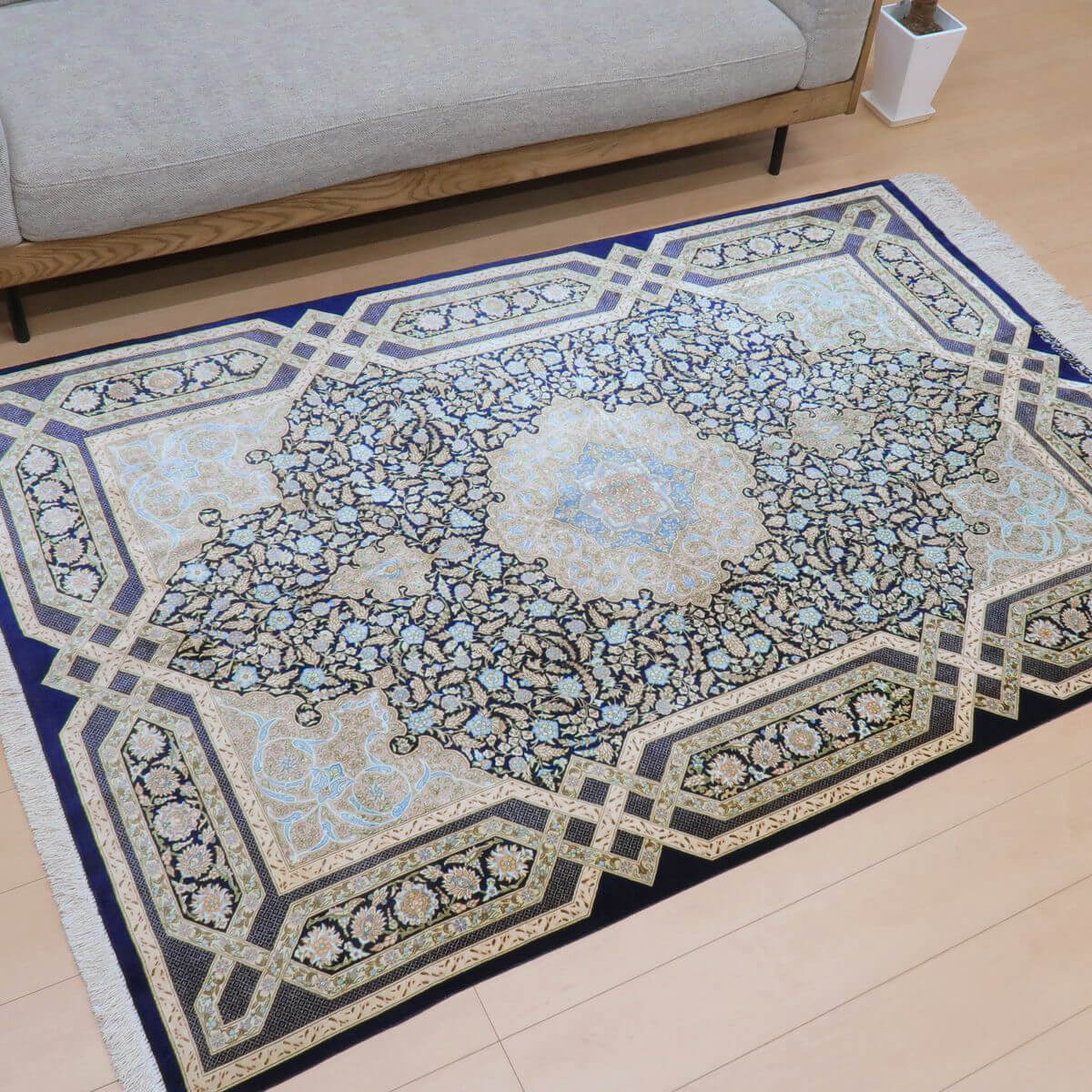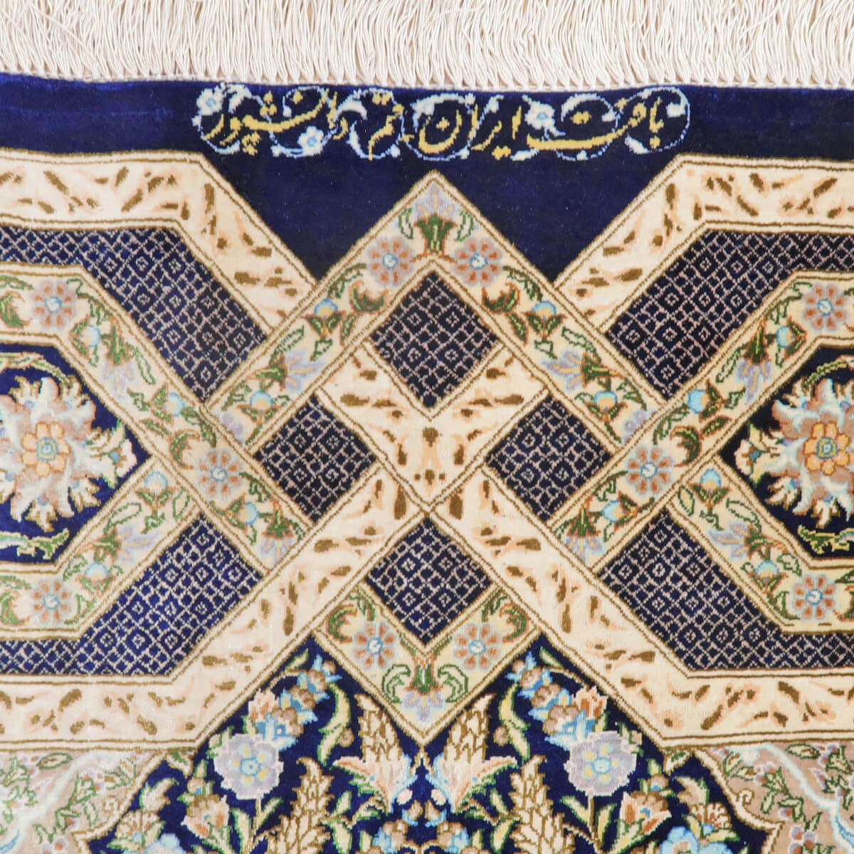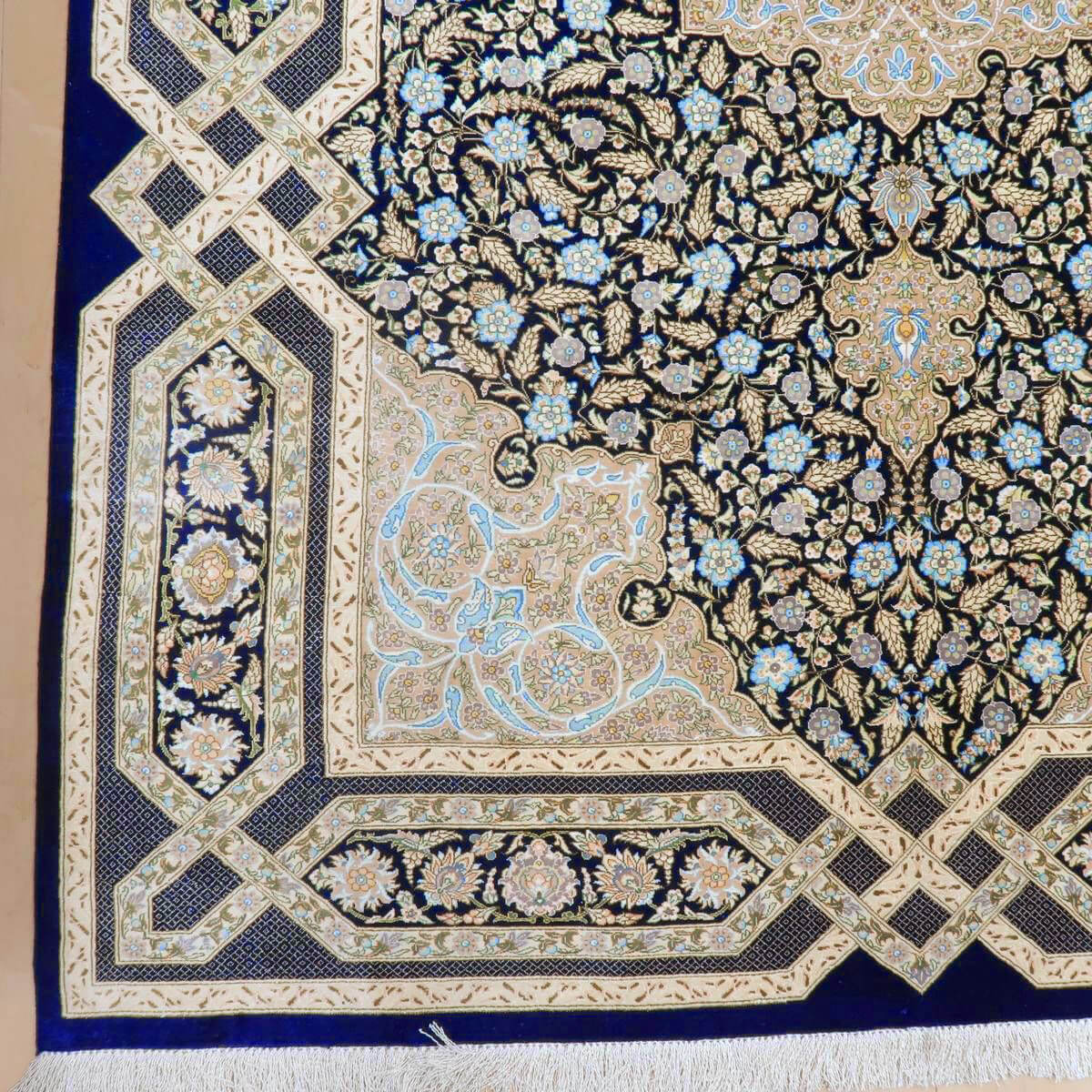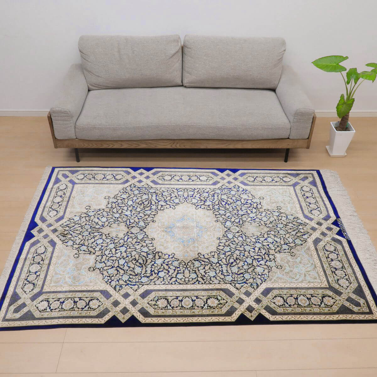 高級ペルシャ絨毯クム、シルク100% 203×134cm(FL-22186)