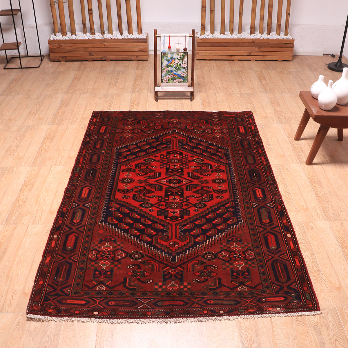 ハマダン産ペルシャ絨毯は、しっかりとしたウールの質感と、職人の技が光る一枚。