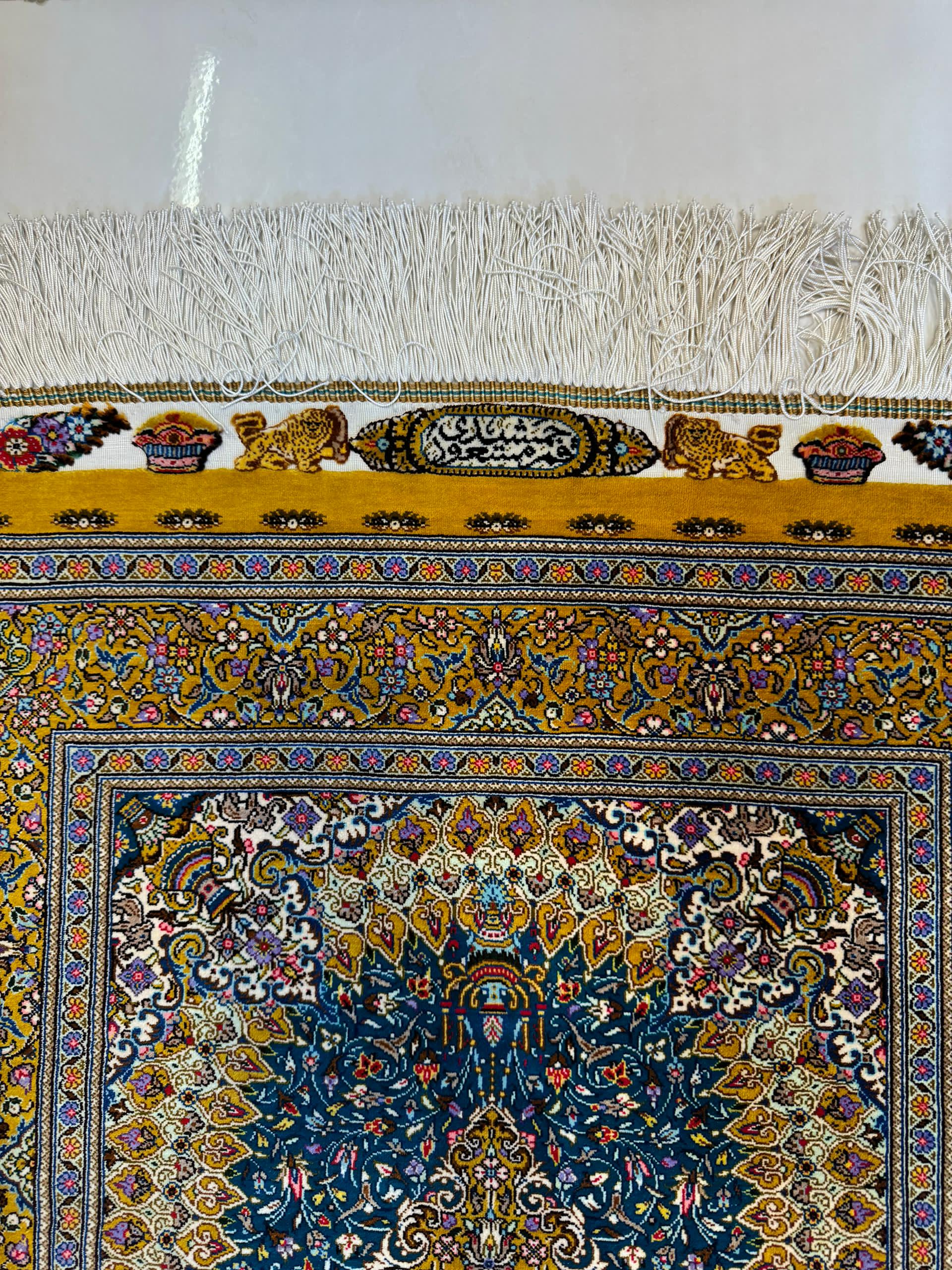 高級ペルシャ絨毯クム産シルク100% ジャムシディ工房 90×61cm(FN-10030)