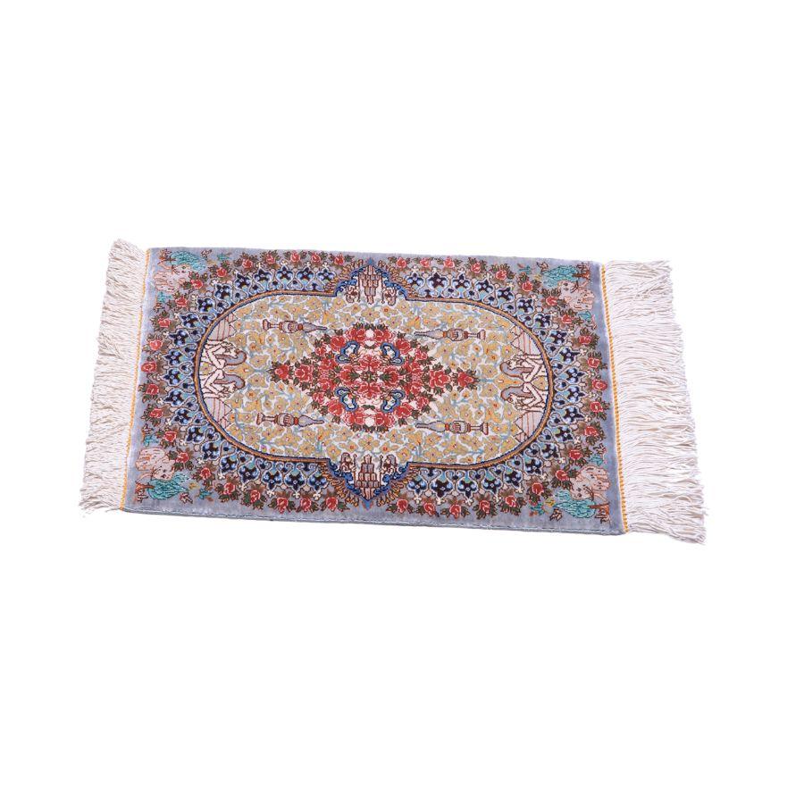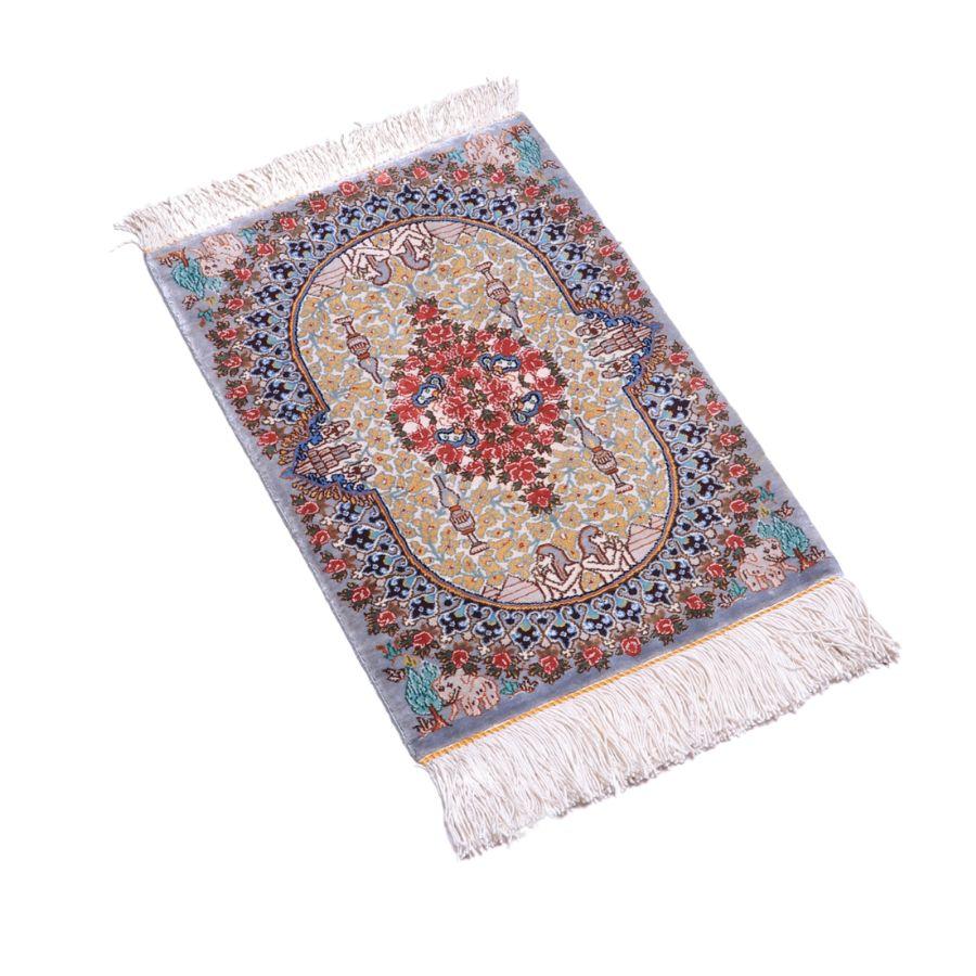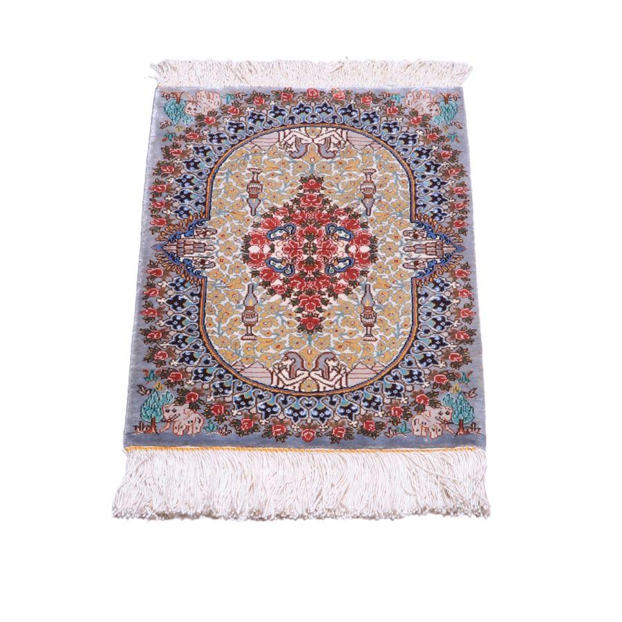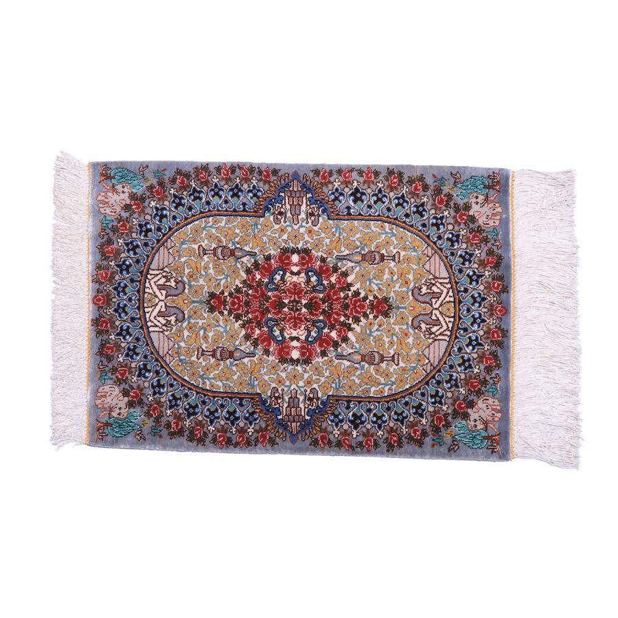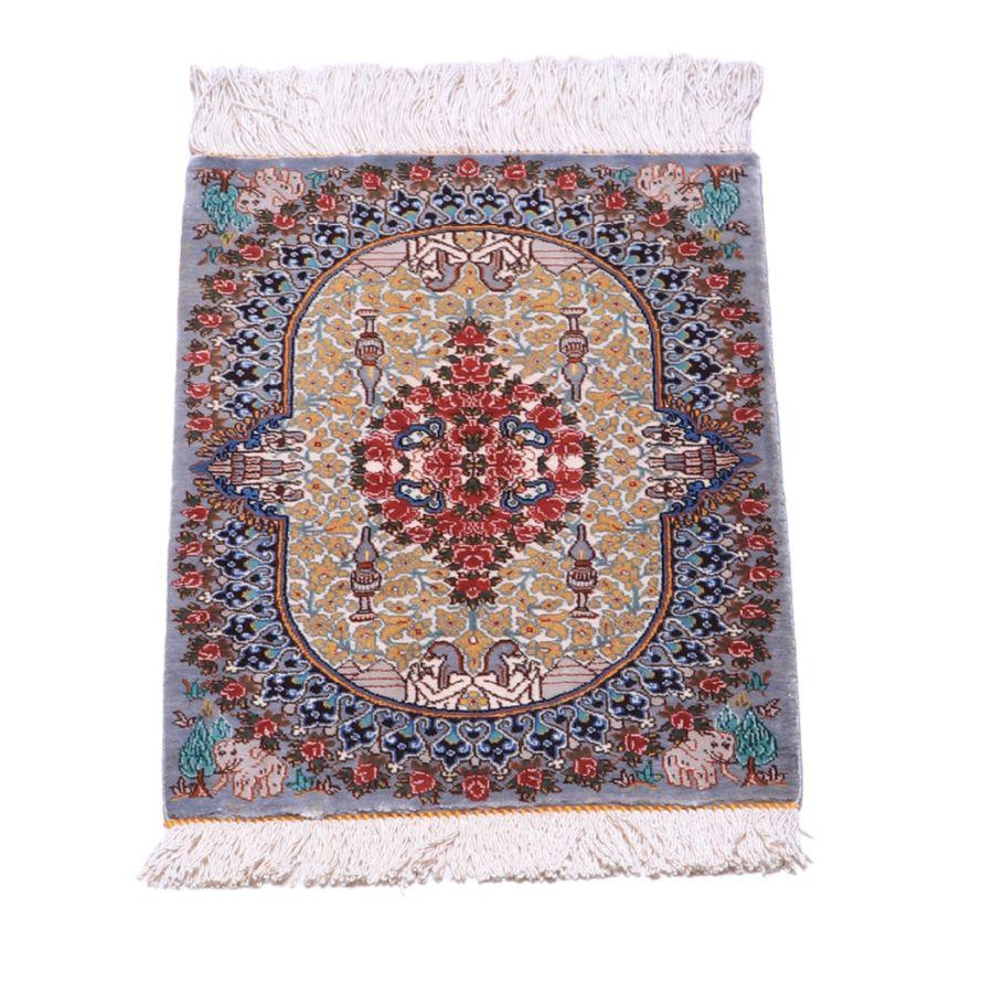 高級ペルシャ絨毯(シルク100%)クム 42×28cm(FN-70276)