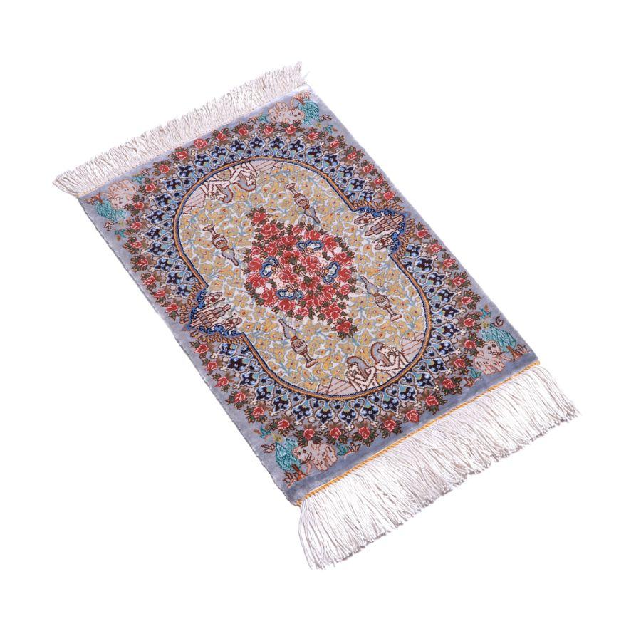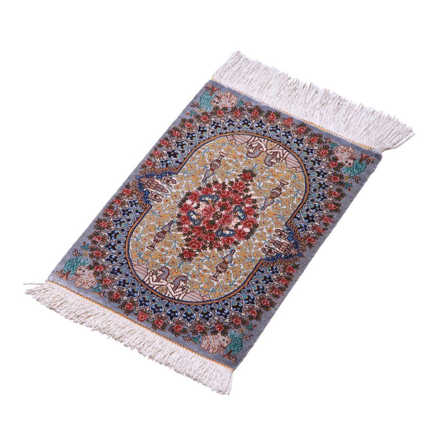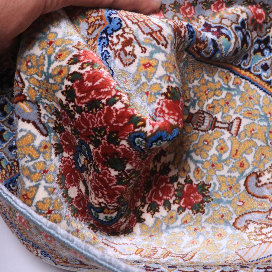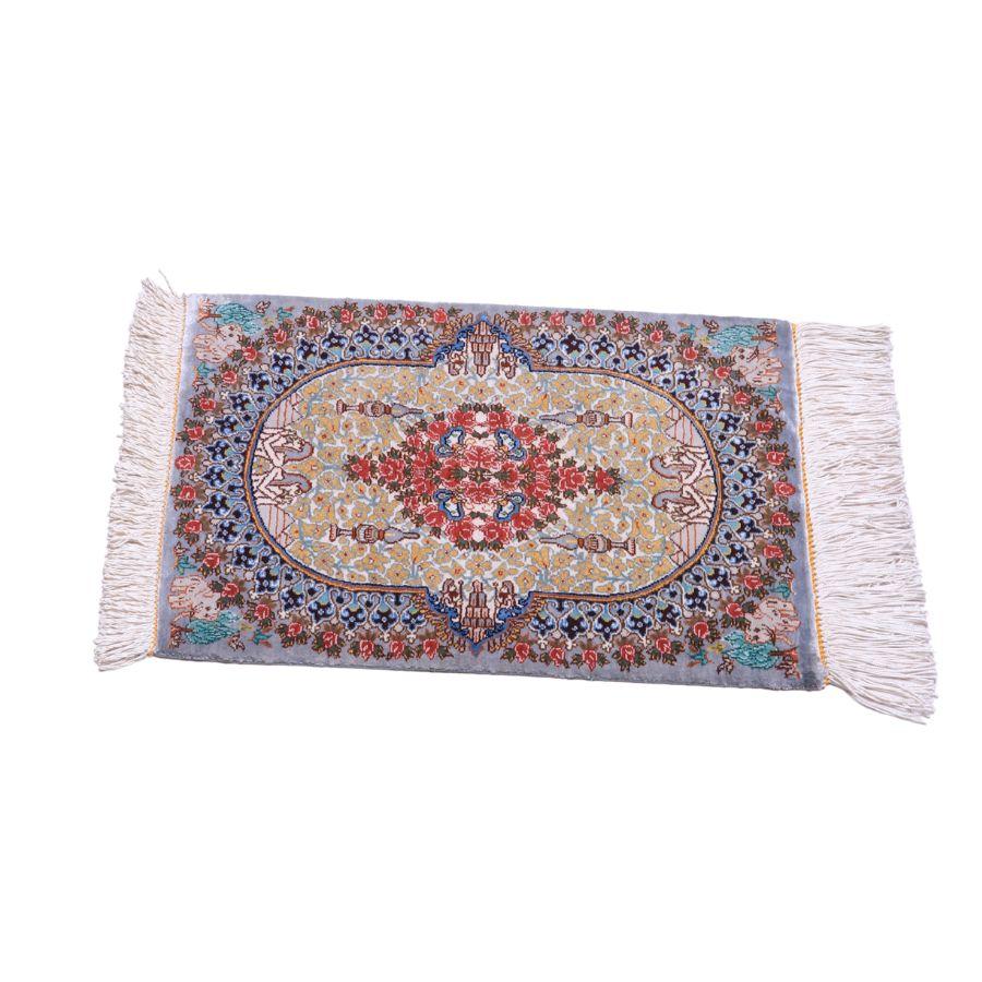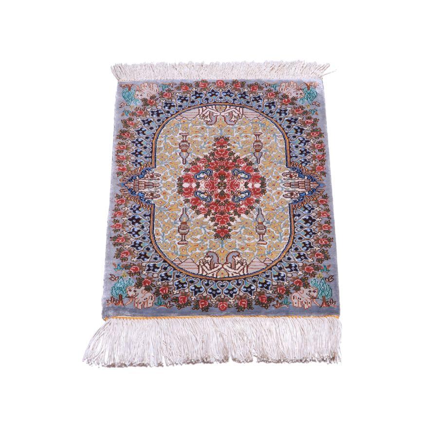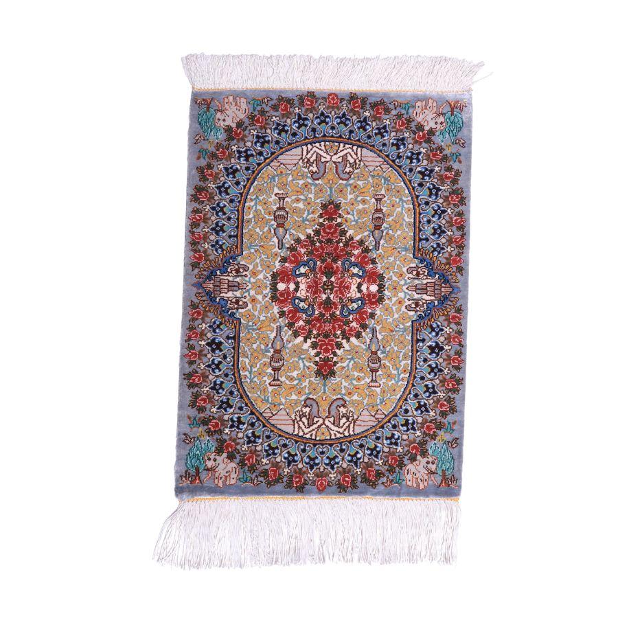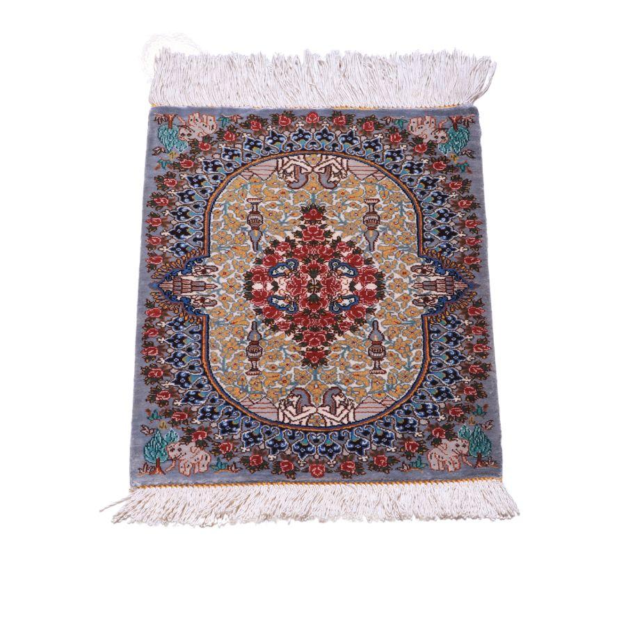 高級ペルシャ絨毯(シルク100%)クム 41×28cm(FN-70277)