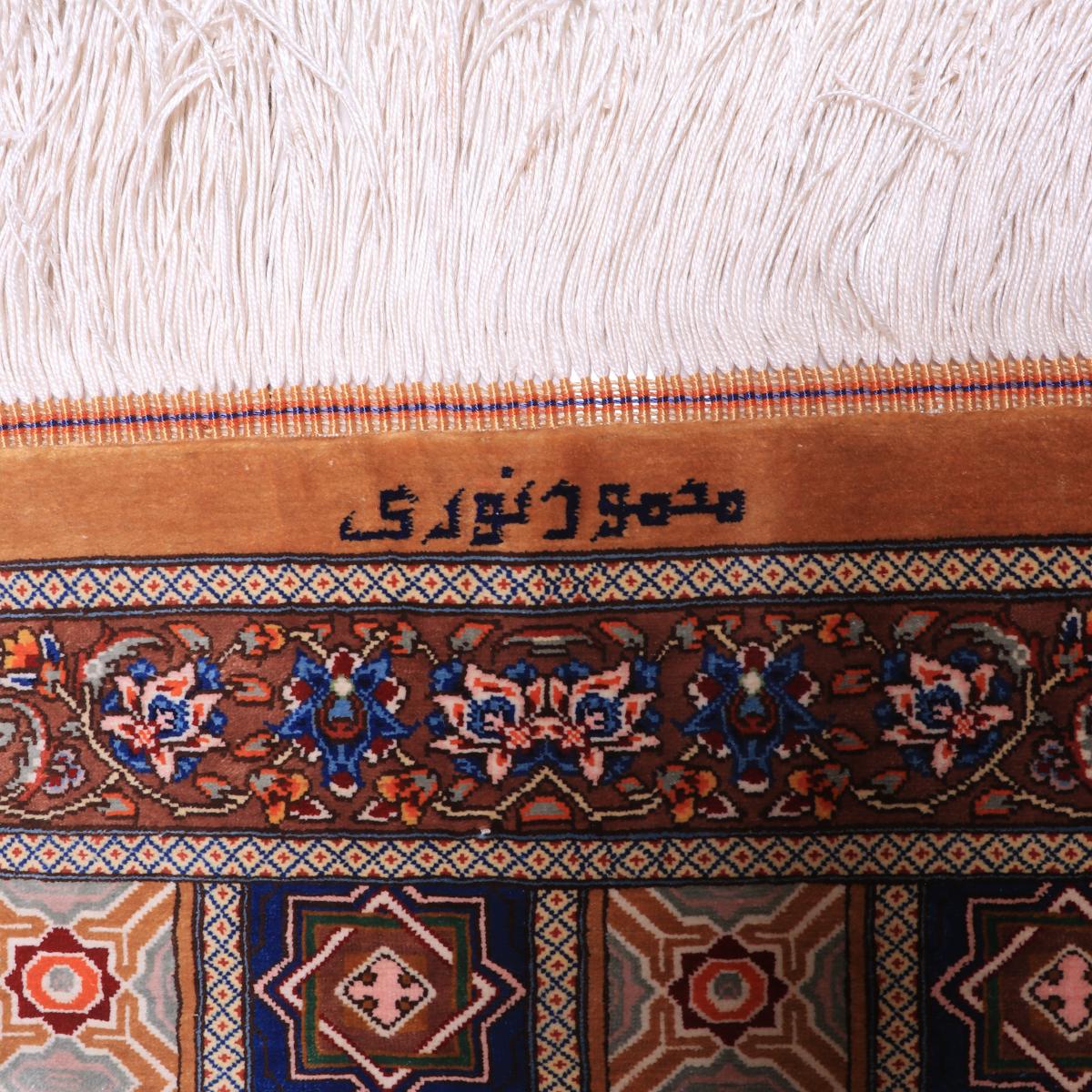 高級ペルシャ絨毯(シルク100%)マフムード・ヌーリ工房 80×60cm(FN-70280)