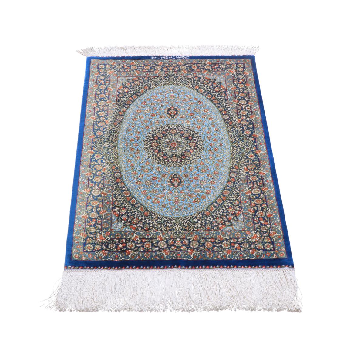 高級ペルシャ絨毯(シルク100%)メフルバフ工房 88×58cm(FN-70288)